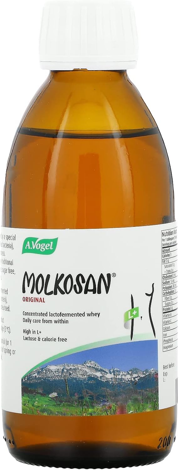About this item Fats & Protein Free - Molkosan Original is made with fresh milk from the Swiss Alps. Fats and proteins are removed by centrifugation and ultrafiltration then lacto-fermented with a specific and exclusive strain of lactobacillus and pasteurized. Gut Balance - Molkosan supports your digestive track by balancing its flora. Lactic Acid & Potassium - Molkosan is a source of lactic acid and potassium. Pure Whey - Lactose, milk protein, sugar and gluten free. Traditional Use - Mix 2 teaspoons with a glass of water or juice. See more product details,Fats & Protein Free - Molkosan Original is made with fresh milk from the Swiss Alps. Fats and proteins are removed by centrifugation and ultrafiltration then lacto-fermented with a specific and exclusive strain of lactobacillus and pasteurized,Gut Balance - Molkosan supports your digestive track by balancing its flora,Lactic Acid & Potassium - Molkosan is a source of lactic acid and potassium,Pure Whey - Lactose, milk protein, sugar and gluten free,Traditional Use - Mix 2 teaspoons with a glass of water or juice
