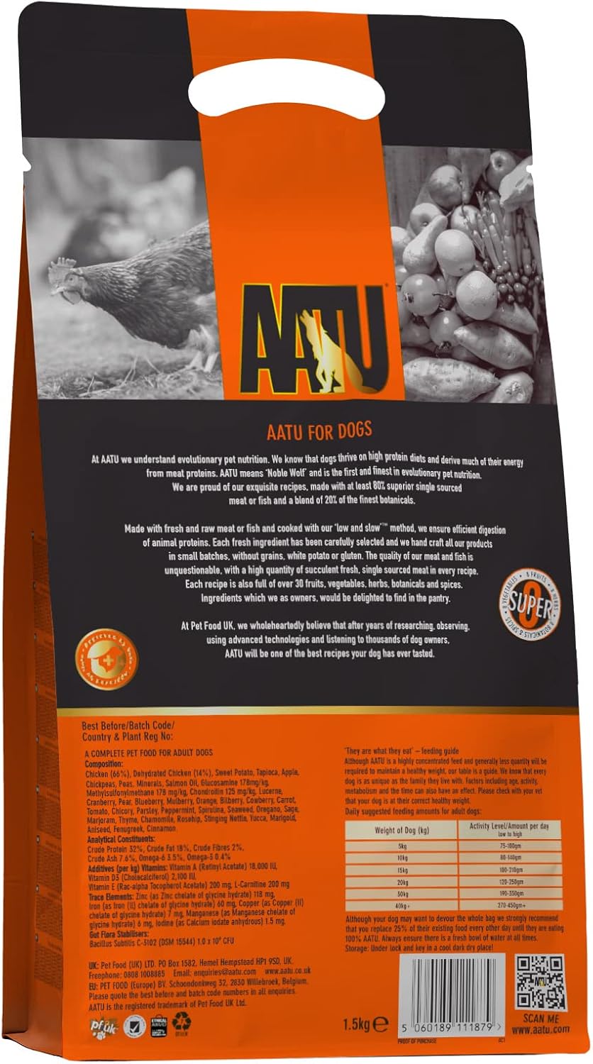 Aatu 80/20 Complete Dry Dog Food, Chicken 1.5Kg - Dry Food Alternaitve To Raw Feeding, High Protein. No Nasties, No Fillers27258.0