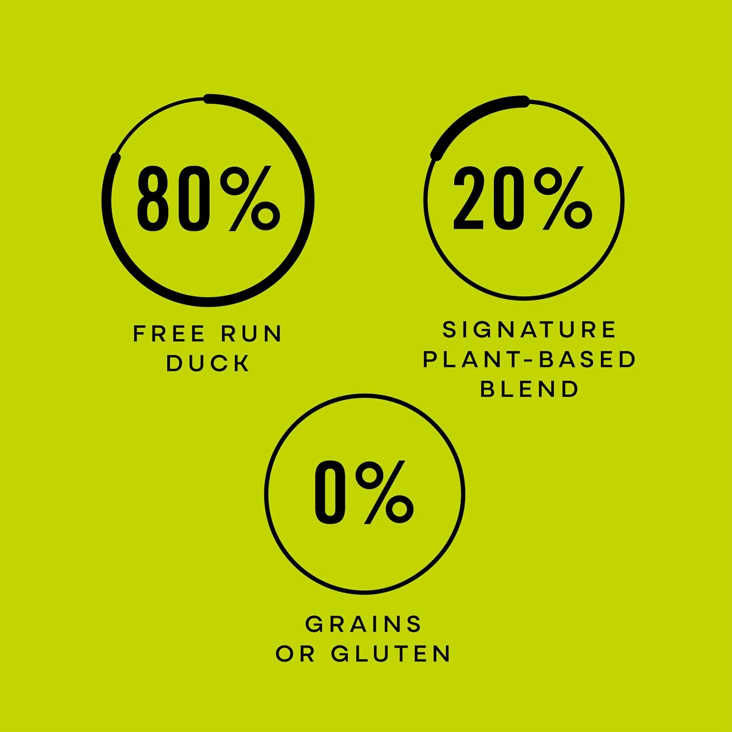 1. MADE USING THE FINEST RAW INGREDIENTS - We meticulously research and source the highest quality produce, with 2.5kg of raw ingredients being used for every 1kg of finished product. Made with 80% single-origin, ethically sourced Duck and 20% of our signature plant-based blend - it's as pure, fresh, and natural as it gets