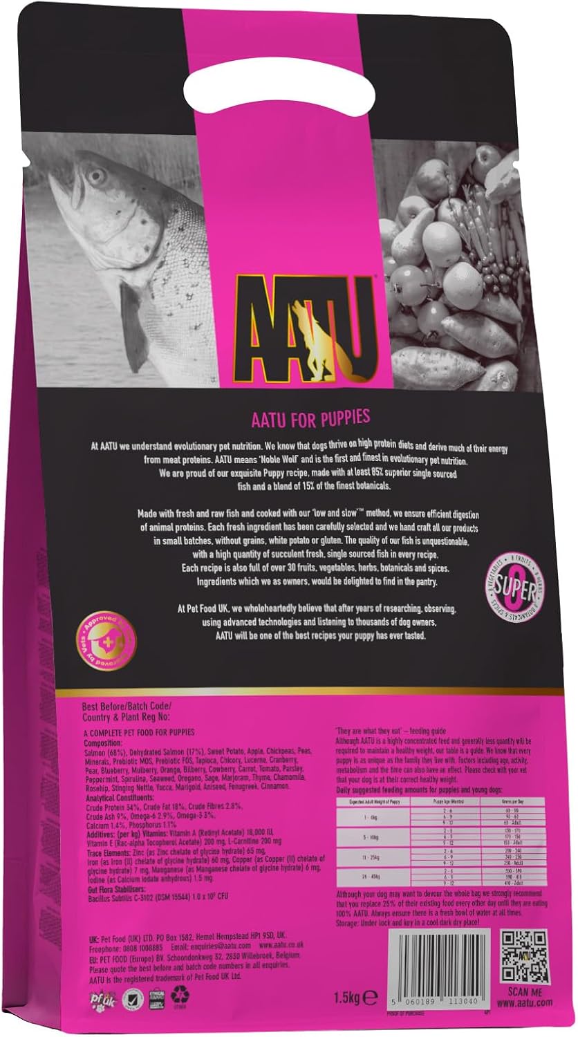 Aatu 85/15 Complete Dry Puppy Food, Salmon 1.5Kg - Dry Food Alternaitve To Raw Feeding, High Protein. No Nasties, No FillersAp1