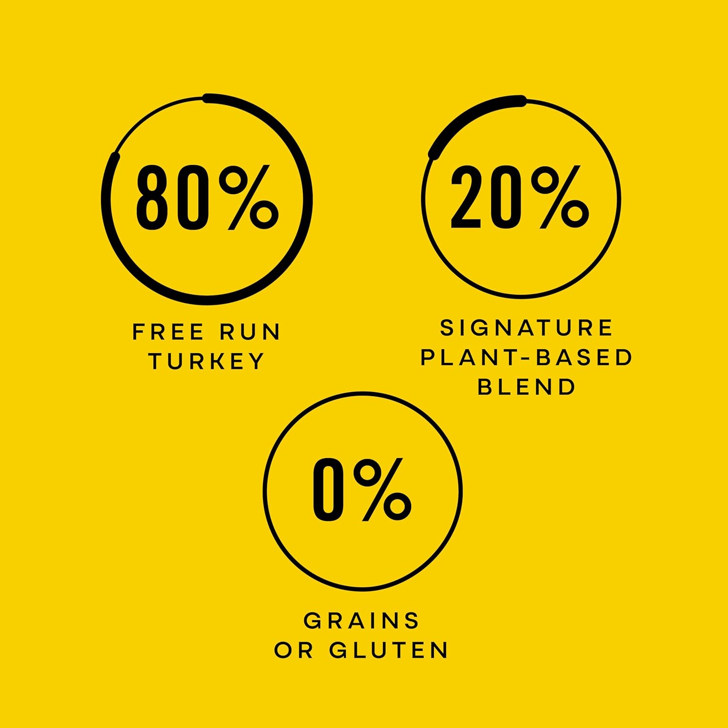 80% Free-Run Turkey: Our 80/20 dry dog food combines 80% free-run turkey with a 20% blend of our Super-8 mix of fruit and veg for a delicious meal your dog will enjoy every time. For 1kg of finished product we use 2.5kg of raw ingredients