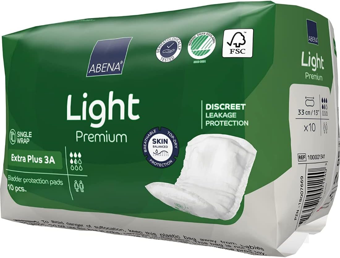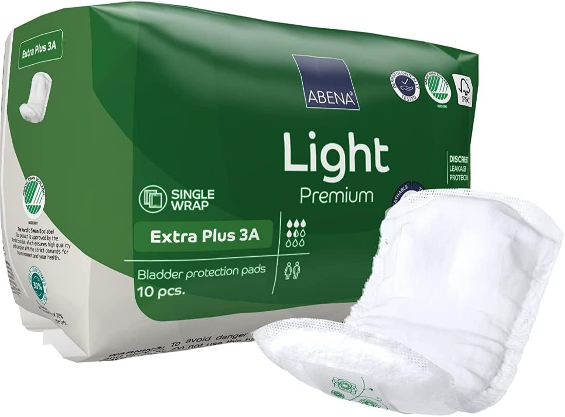 ABENA Light Incontinence Pads, Eco-Labelled Women's Incontinence Pads for Adults, Breathable and Comfortable with Fast Absorption and Protection, Incontinence Pads for Women-Extra Plus 3A,10 PK,White
