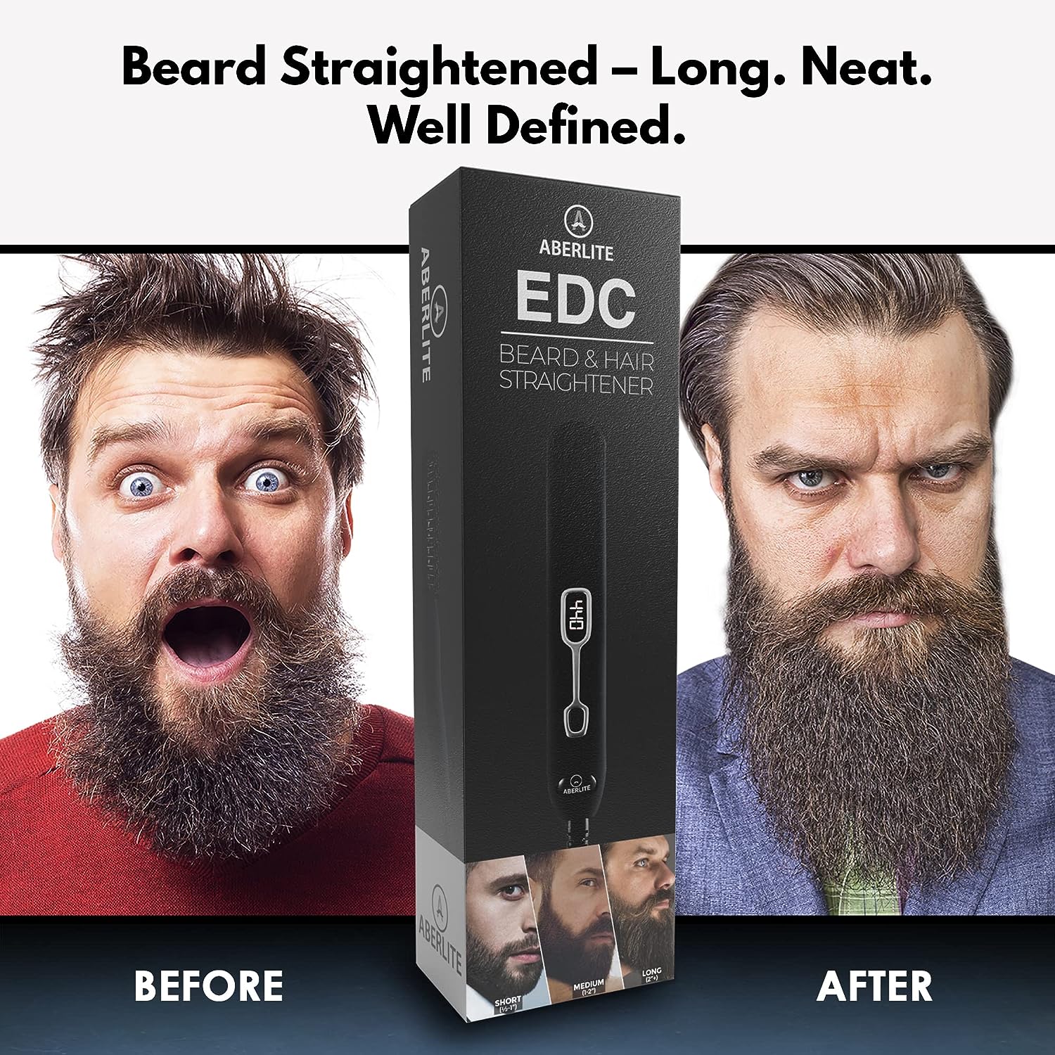 ABOUT THE PRODUCT: 1 > Perfect Beard Grooming Kit for Men Gift Set & Designed for Facial Hair Aberlite Beard Straightening Brush is designed specifically for facial hair to avoid damaging your beard and burning your face. It’s also suitable for head hair for both men and women 2 > 6 Heat Settings Up to 440°F Use a temperature above 380°F(190°C) to straighten a curly beard effectively. Less heat damage to your beard 3 > Deliver Straight, Smooth Facial Hair in One Pass -This Beard grooming kit for men gift set is Unique PTC heating technology always maintains a consistent level of heat to deliver maximum straightening power with every pass. Great value as Birthday Gifts, Gifts for dad, Gifts for boyfriend, Valentines Day Gifts, Christmas Gifts for Men!Aberlite EDC - Premium Beard Straightener Brush for Men - Professional Straightening Tool Heated Comb - Beard Kits for Men - Beard Kits Gift Sets Men - Beard Grooming Kit for Men Gift Set (Black)