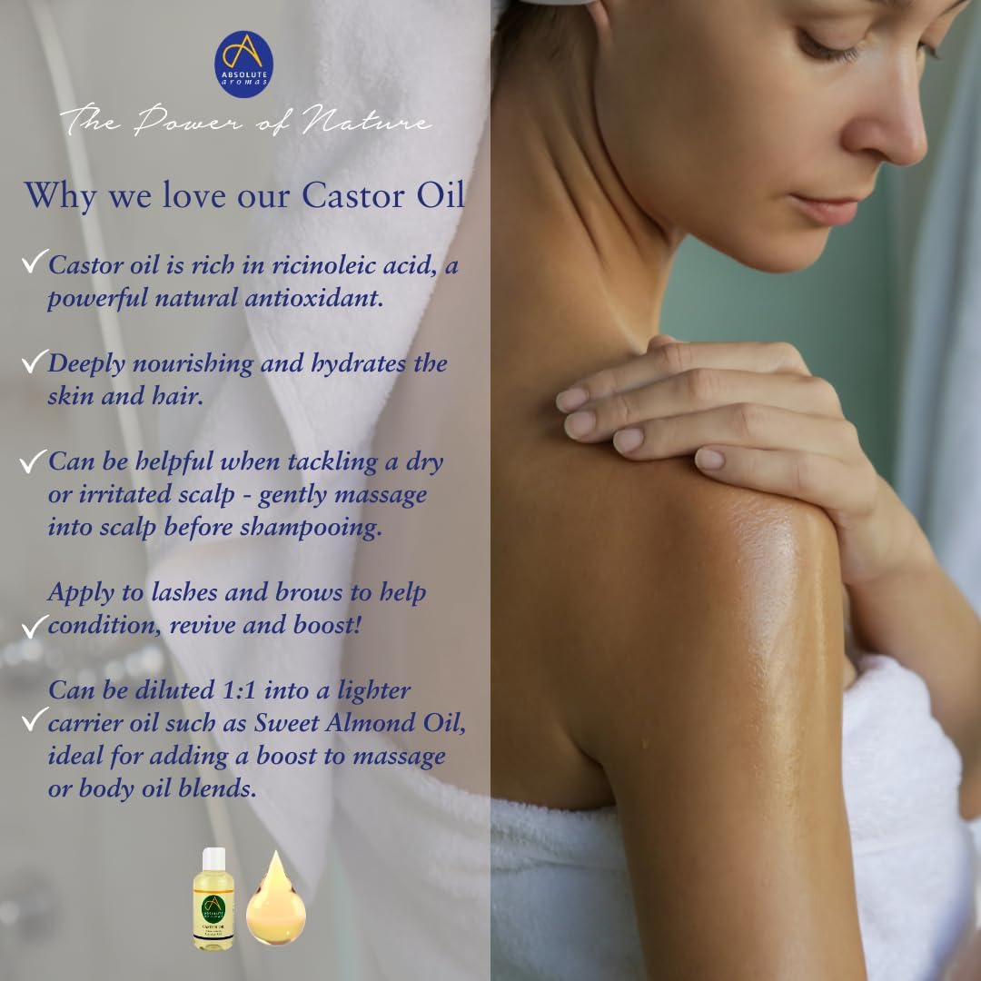 Absolute Aromas Organic Castor Oil 100Ml - 100% Pure And Natural Carrier Oil - For Massage, Aromatherapy And Blending Essentials Oils