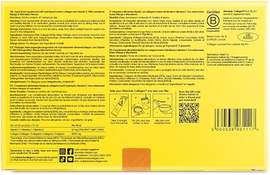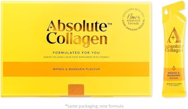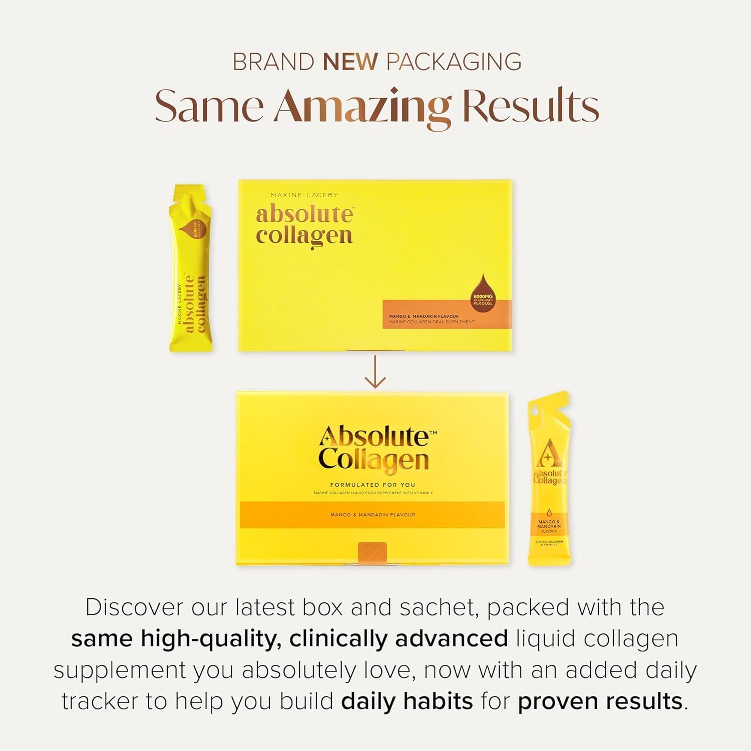 Absolute Collagen Marine Liquid Collagen Supplement For Women | New Mango & Mandarin Flavour, Supports Hair, Nail & Skin Health, 8000Mg Of Hydrolysed Collagen Per Sachet, Vitamin C | 14 Sachets