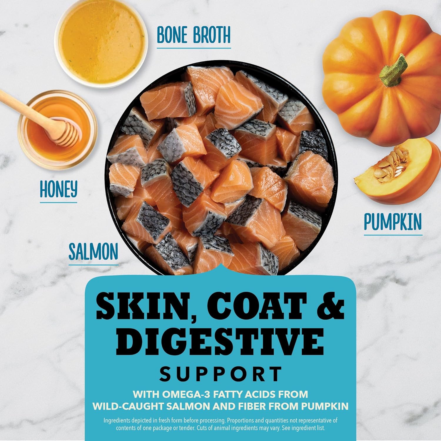 One (1) 4 oz bag of ACANA Chewy Tenders Salmon Dog Treats10High-protein dog treat recipe features wild-caught salmon and bone broth and is balanced to include 85 percent* animal ingredients10Nutritious ingredients like Omega-3 fatty acids and fiber help support your dog's skin, coat and digestive health10ACANA dog treats balance protein-rich animal ingredients with other wholesome ingredients, including sweet honey to create a soft, chewy texture your dog loves10Premium dog treats made in the USA with quality ingredients from around the world