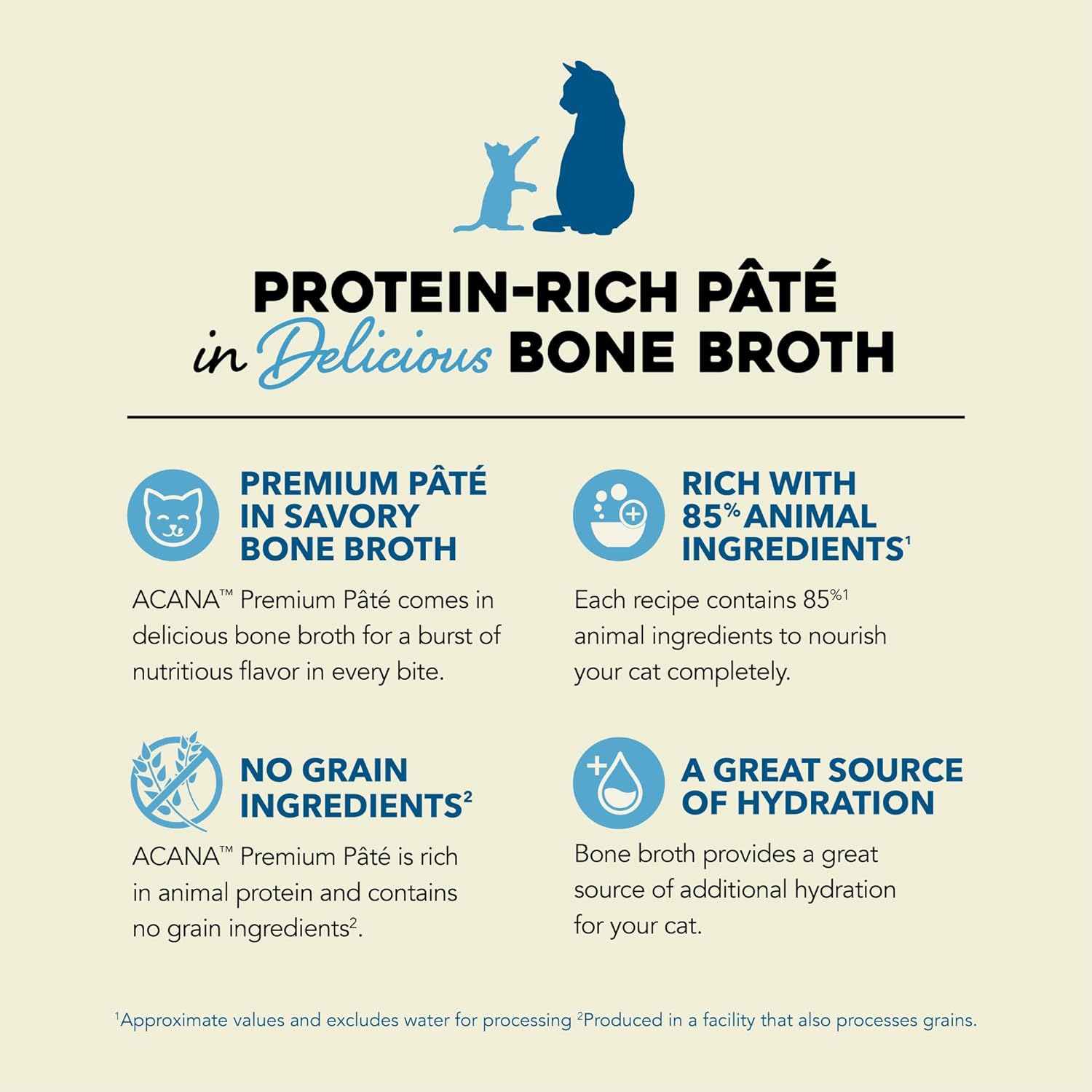 Acana Premium Pate Variety 12 Pack: Salmon & Chicken Recipe (6) + Tuna & Chicken Recipe (6), 3Oz