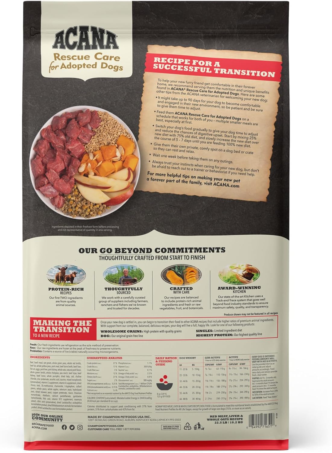 Acana Rescue Care For Adopted Dogs Dry Dog Food, Red Meat, Liver & Whole Oats Recipe, 22.5Lb