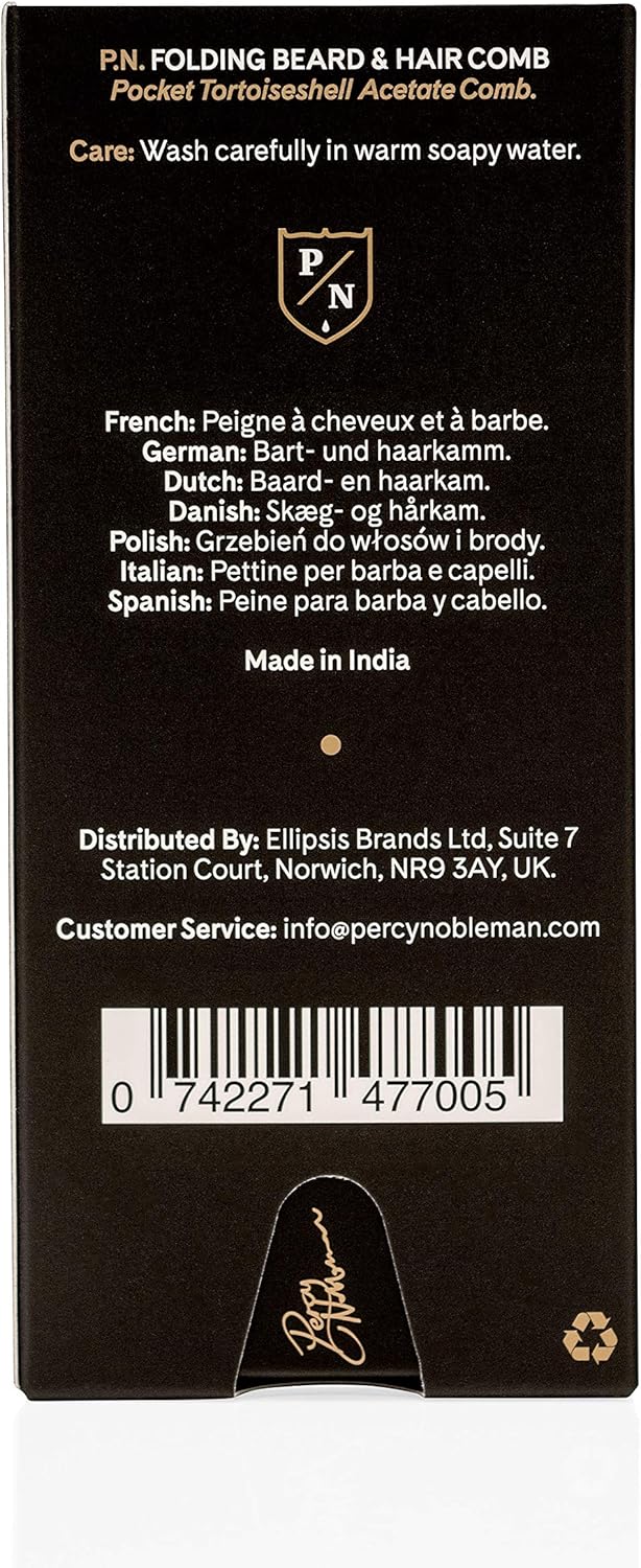Acetate Folding Beard & Hair Comb by Percy Nobleman, Ideal for use on Beards & Hair