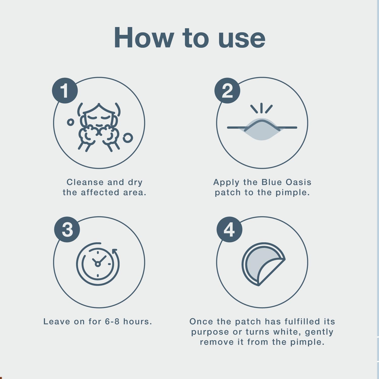 About this item Proven Effective Hydrocolloid Acne Patches: Trusted and celebrated for its overnight pimple improvement without the need for painful popping. The results speak for themselves. These hydrocolloid acne patches are for face zit patches and body acne spot treatment. Our acne pimple patch, zit stickers is easy to use. Hydrocolloid Acne Patches Rapid Results 6-8 Hours: The secret to our pimple patches invisible effectiveness lies in their ability to absorb zit pimple impurities in just 6-8 hours. Suitable for all skin types, our pimple patches for face provide a speedy solution for those seeking blemish spot treatment. All-Night Adhesion Pimple Patch: Our pimple patches large stay securely in place, even though a full night of tossing, turning, and pillow-squishing. Each hydrocolloid patch helps with covering your pimple spot. You'll wake up refreshed and ready to remove our pimple stickers without any irritation. Seamless Blending Pimple Patches: Discreet and unobtrusive, our acne patches feature a thin, matte finish that seamlessly blends with your skin. Wear our acne patch day or night without drawing unnecessary attention. To use the hydrocolloid acne patches, clean and dry the area apply the pimple patch wait 6-8 hours, remove blemish patches. Peace-Of-Mind pimple Patches Design: We understand the importance of skin safety, which is why our hydrocolloid acne patches for face are UV sterilized and allergy tested. You can use our hydrocolloid patch with confidence, knowing they're gentle on your skin. Each box contains 96 zit patches for face, each with a 12mm diameter, ensuring you have an ample supply for your needs. The Blue Oasis Acne Pimple Patches for face are designed to be your trusted solution for pimple improvement › See more product details,Proven Effective Hydrocolloid Acne Patches: Trusted and celebrated for its overnight pimple improvement without the need for painful popping. The results speak for themselves. These hydrocolloid acne patches are for face zit patches and body acne spot treatment. Our acne pimple patch, zit stickers is easy to use,Hydrocolloid Acne Patches Rapid Results 6-8 Hours: The secret to our pimple patches invisible effectiveness lies in their ability to absorb zit pimple impurities in just 6-8 hours. Suitable for all skin types, our pimple patches for face provide a speedy solution for those seeking blemish spot treatment,All-Night Adhesion Pimple Patch: Our pimple patches large stay securely in place, even though a full night of tossing, turning, and pillow-squishing. Each hydrocolloid patch helps with covering your pimple spot. You'll wake up refreshed and ready to remove our pimple stickers without any irritation,Seamless Blending Pimple Patches: Discreet and unobtrusive, our acne patches feature a thin, matte finish that seamlessly blends with your skin. Wear our acne patch day or night without drawing unnecessary attention. To use the hydrocolloid acne patches, clean and dry the area apply the pimple patch wait 6-8 hours, remove blemish patches,Peace-Of-Mind pimple Patches Design: We understand the importance of skin safety, which is why our hydrocolloid acne patches for face are UV sterilized and allergy tested. You can use our hydrocolloid patch with confidence, knowing they're gentle on your skin. Each box contains 96 zit patches for face, each with a 12mm diameter, ensuring you have an ample supply for your needs. The Blue Oasis Acne Pimple Patches for face are designed to be your trusted solution for pimple improvement