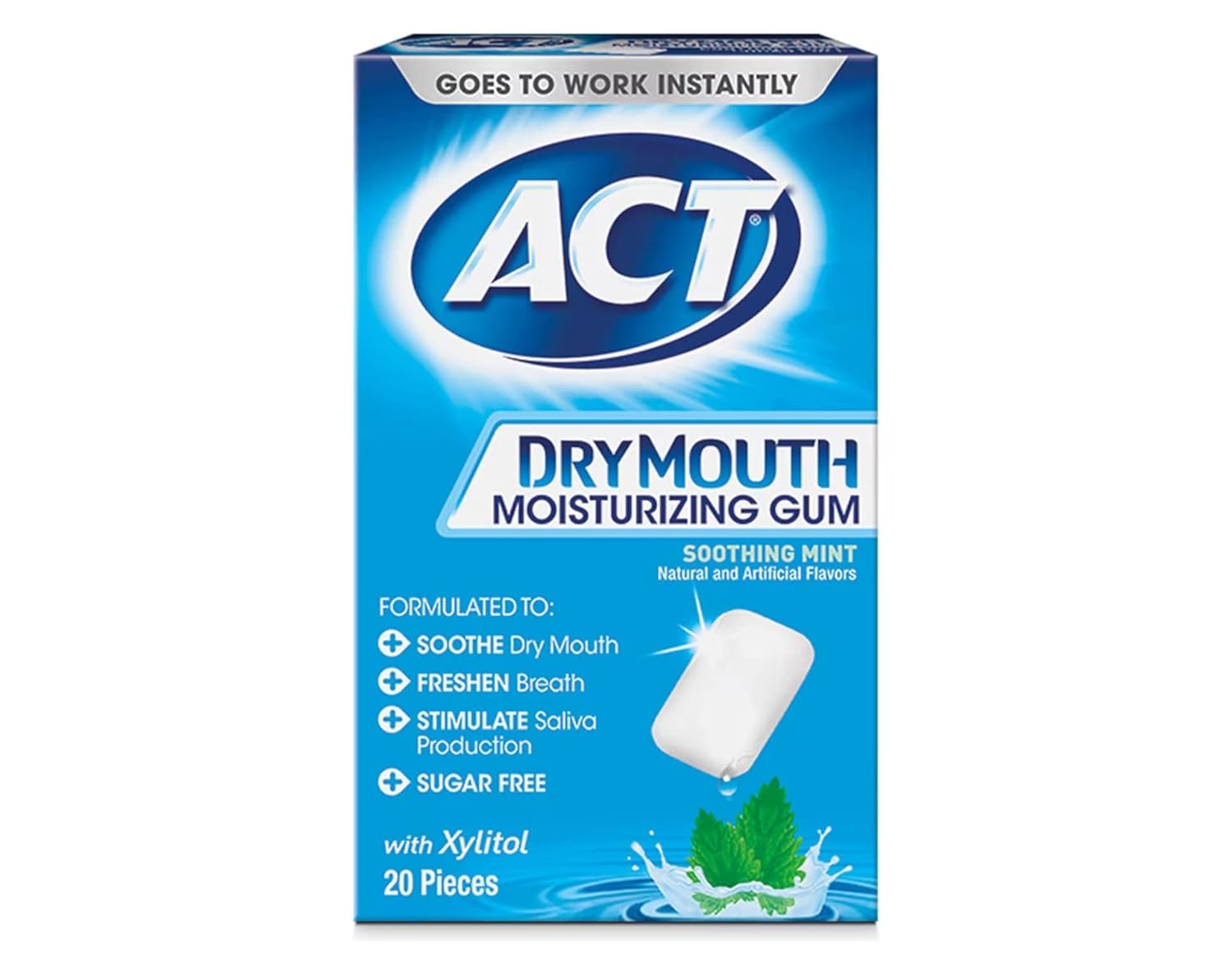 Act Dry Mouth Moisturizing Gum goes to work instantly to relief dry mouth anytime and anywhere