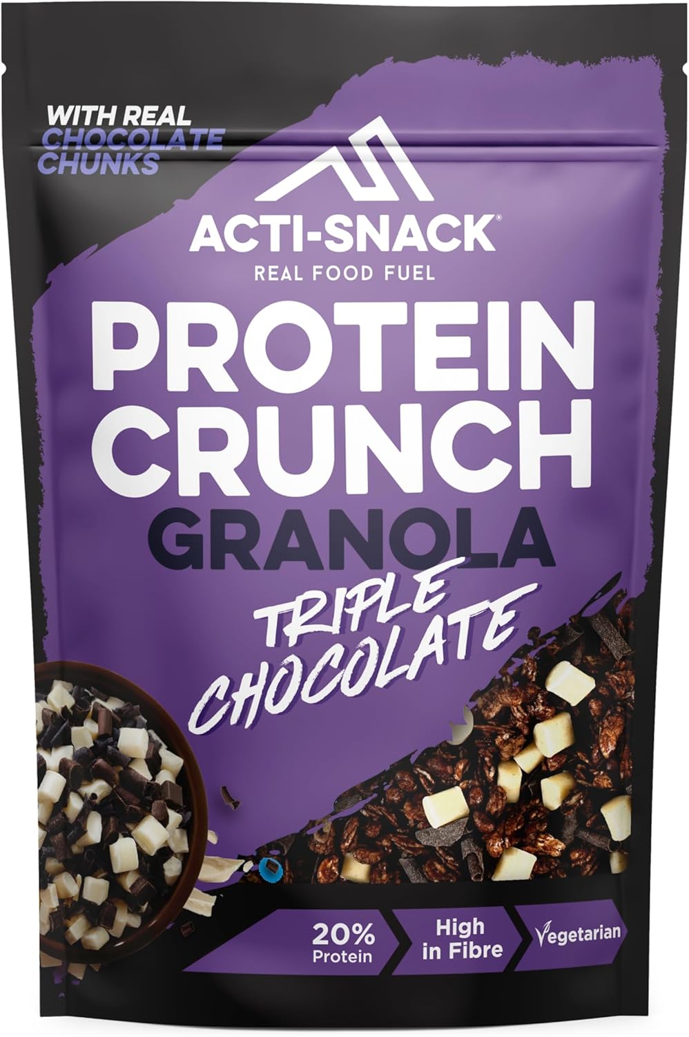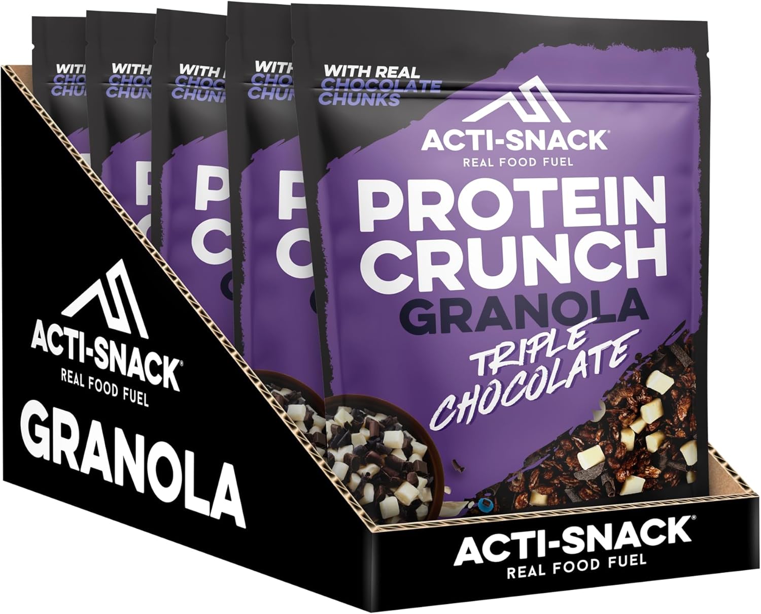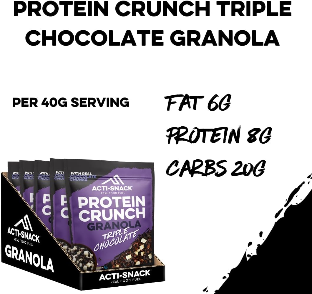 Acti-Snack High Protein Triple Chocolate Granola - 5 X 350G Packs - Protein Granola | High Protein Cereals Breakfast | Low Sugar Granola - High Fibre Granola Cereal