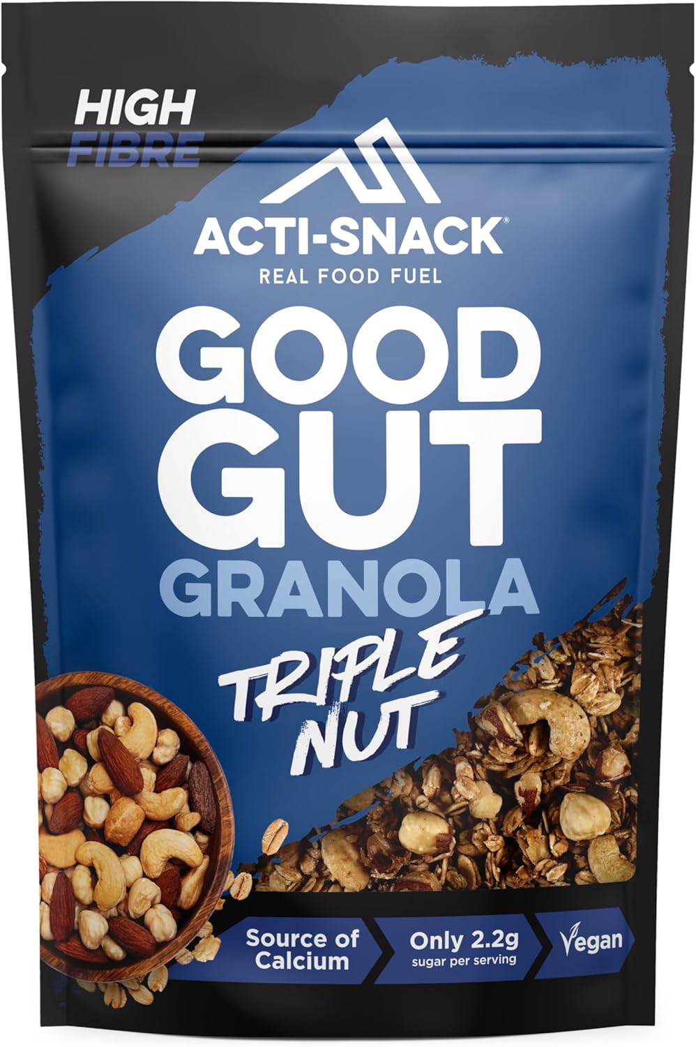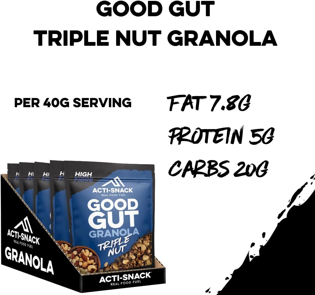 Acti-Snack Triple Nut Good Gut Granola - 5 X 380 Grams Packs - High Protein Cereals Breakfast - All Natural & High Calcium Low Sugar Granola