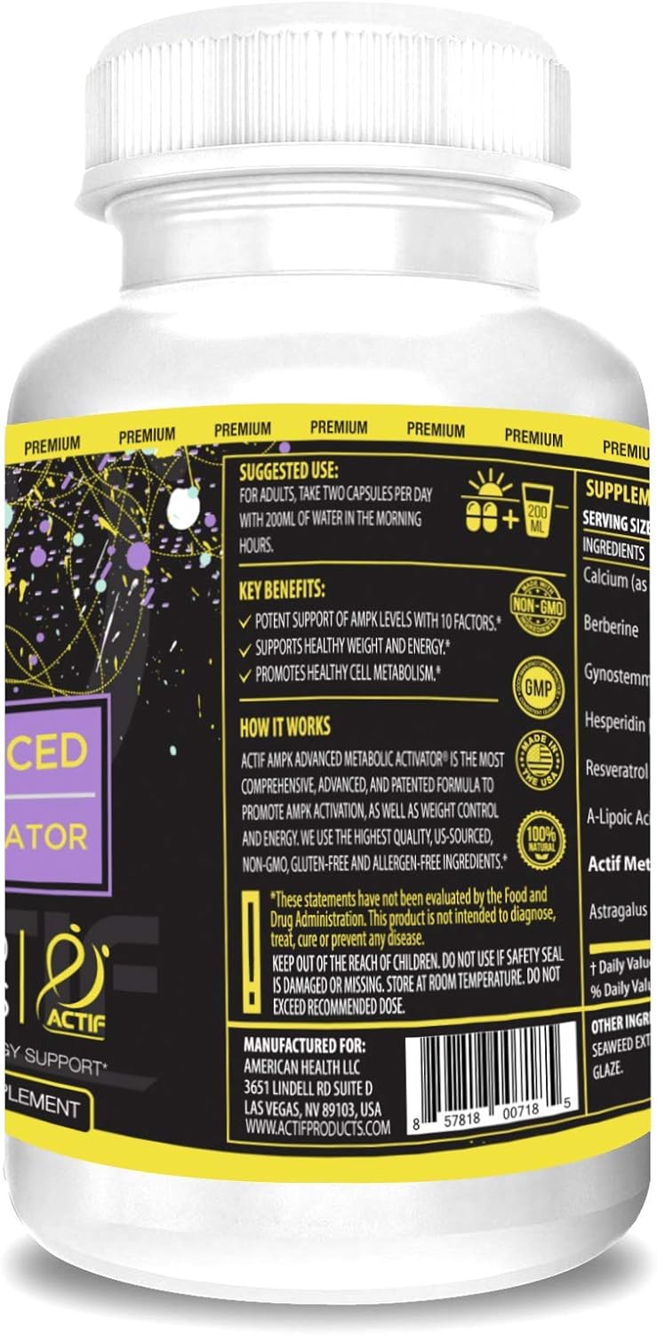 Actif Ampk Advanced Metabolic Activator With 10 Factors, Non-Gmo, Weight Loss And Energy Support, 60 Capsules