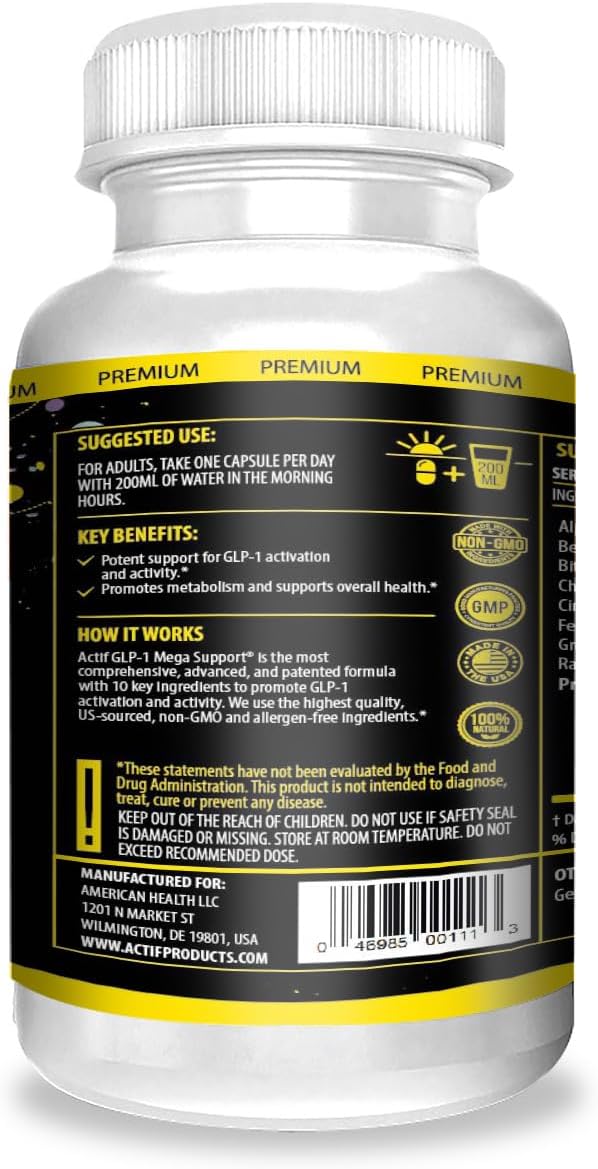 Actif Glp-1 Mega Support With 10 Advanced Factors And Probiotics, Glp-1 Activator And Metabolism Support, Non Gmo, Made In Usa, 60 Count