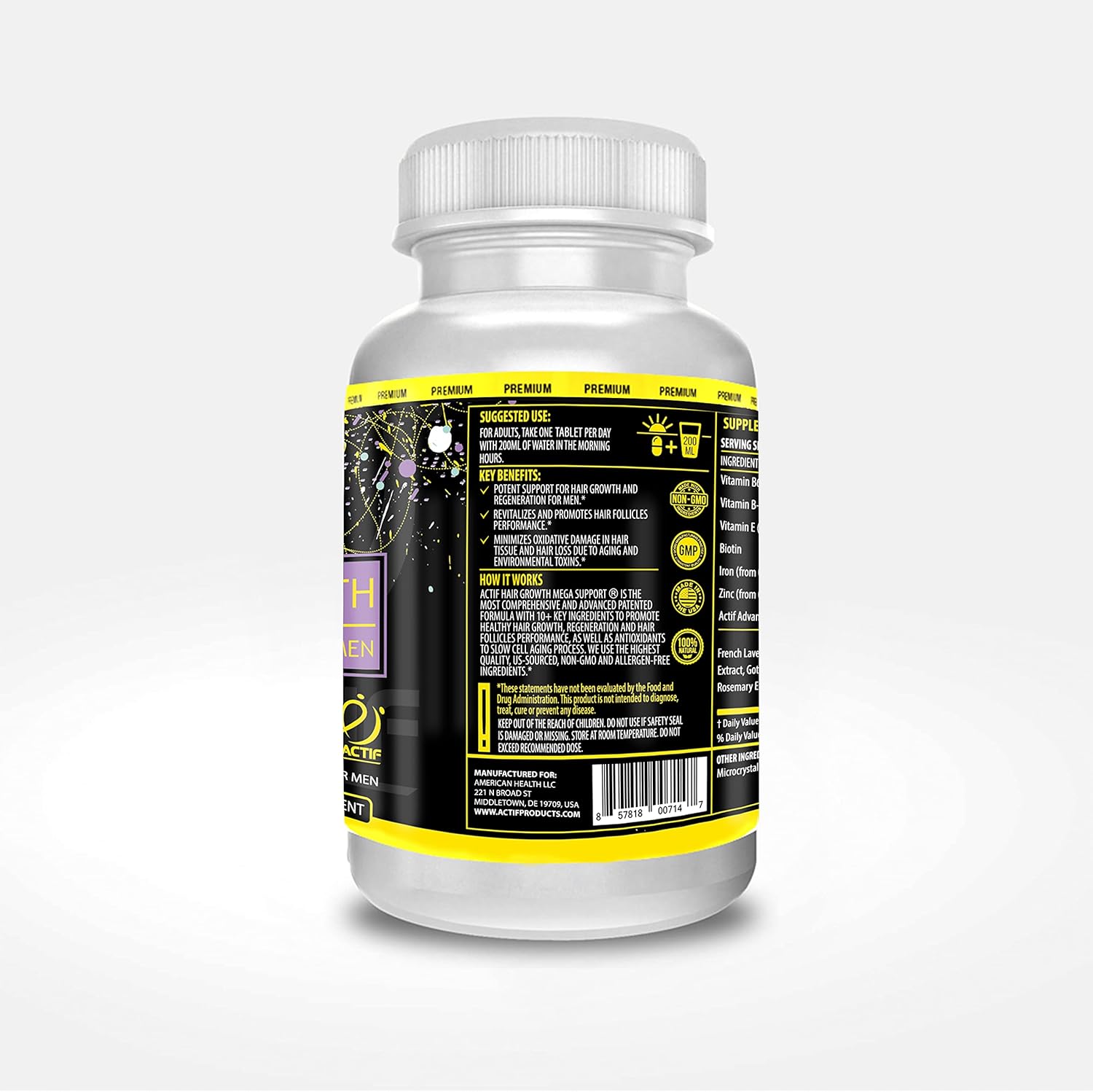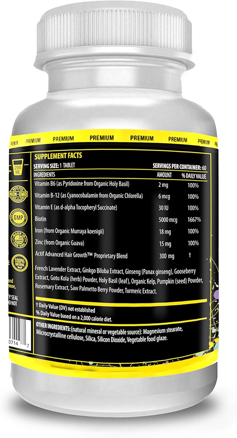Actif Hair Growth For Men Mega Support 10+, Non-Gmo, Stops 99% Hair Loss, Made In Usa, 60 Count