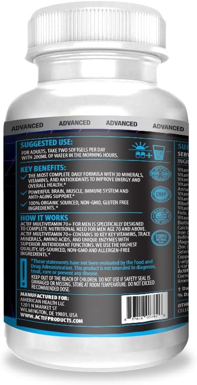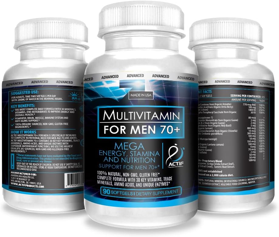 Actif Multivitamin For Men Age 70+ With 30 Advanced Factors β Non Gmo, Made In Usa, 90 Count
