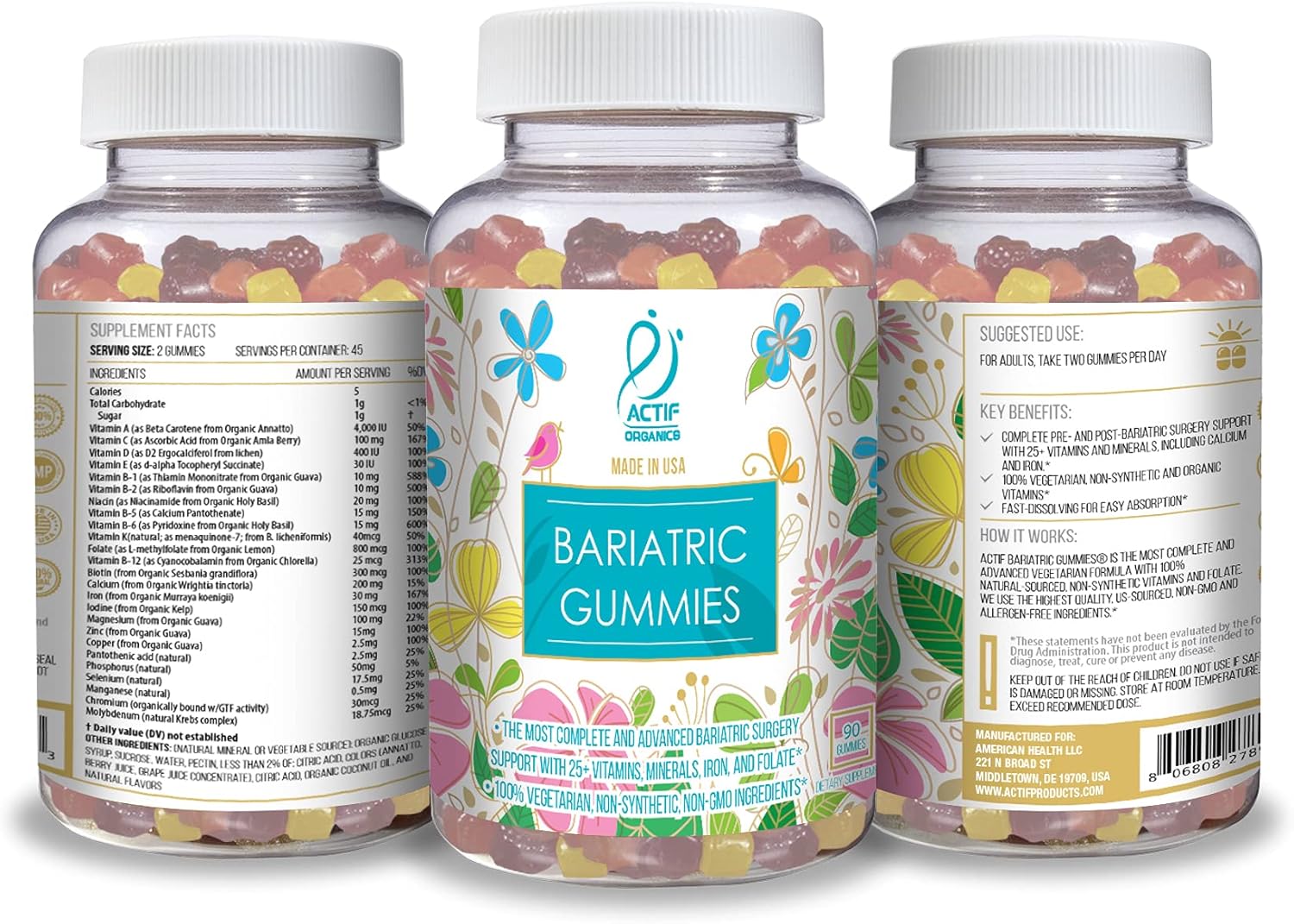 Actif Organic Bariatric Gummies With 25+ Organic Vitamins And Minerals For Bariatric Surgery, Advanced Formula - 90 Count