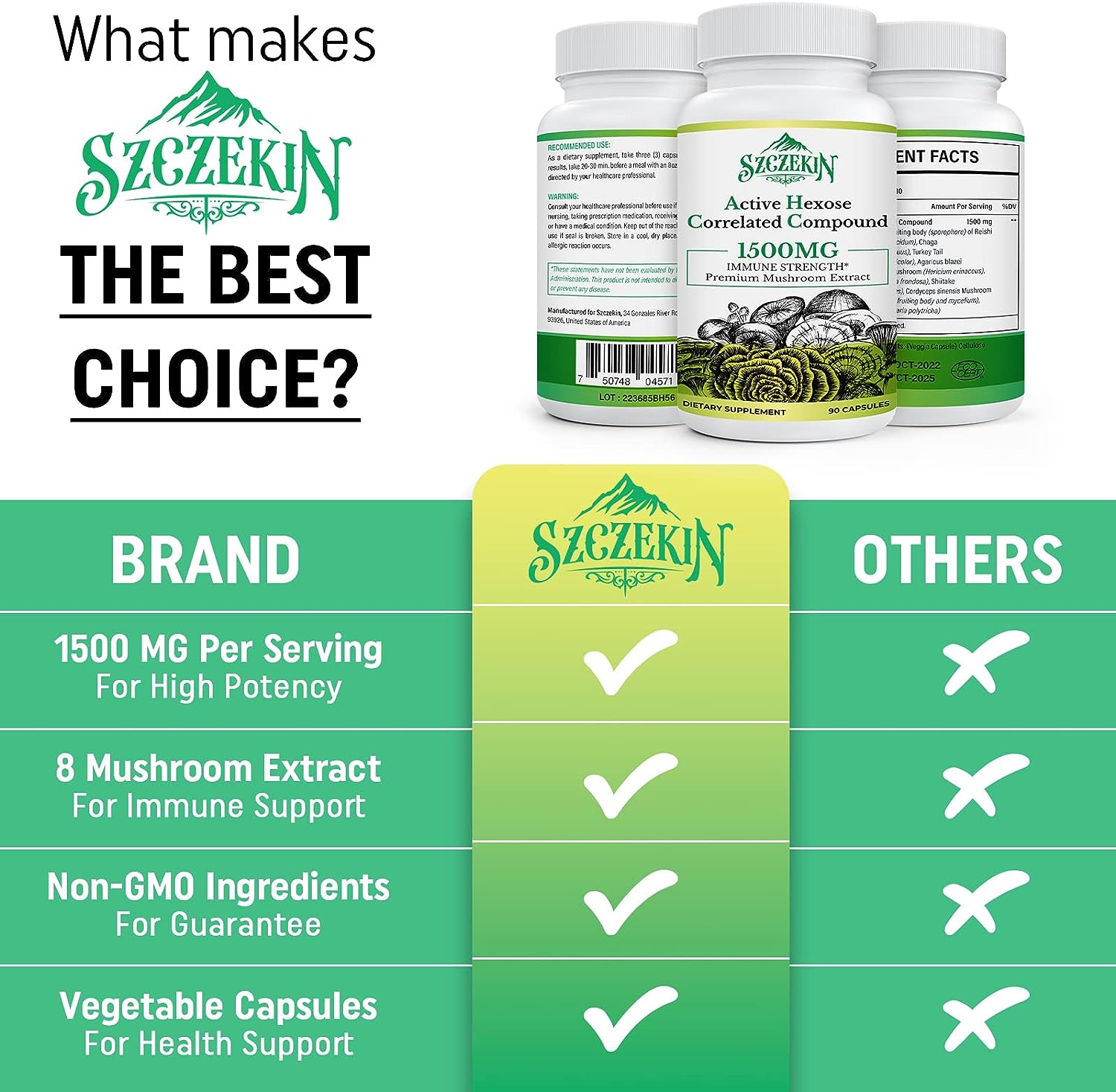 1500 MG HIGH POTENCY BLEND: Active Hexose Correlated Compound is a mushroom extract developed from mushroom mycelia, which is reported to impact the number and activity of immune cells, including natural killer (NK) and T cells. Our supplements Contain 90 vegan capsules. Take 3 capsules per day. The Active Hexose Correlated Compound 1500mg provided per serving can have a massive impact on your daily life and whole body