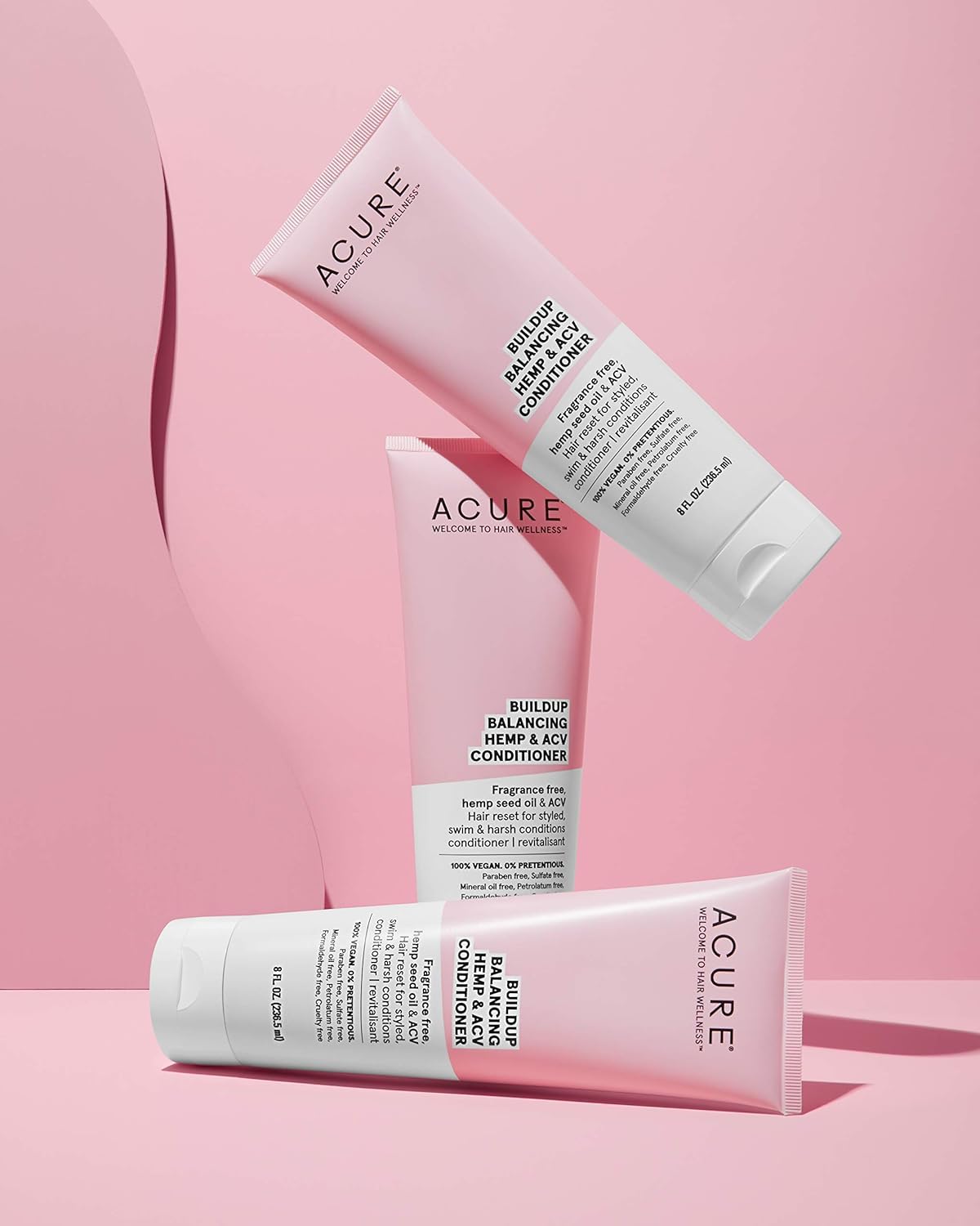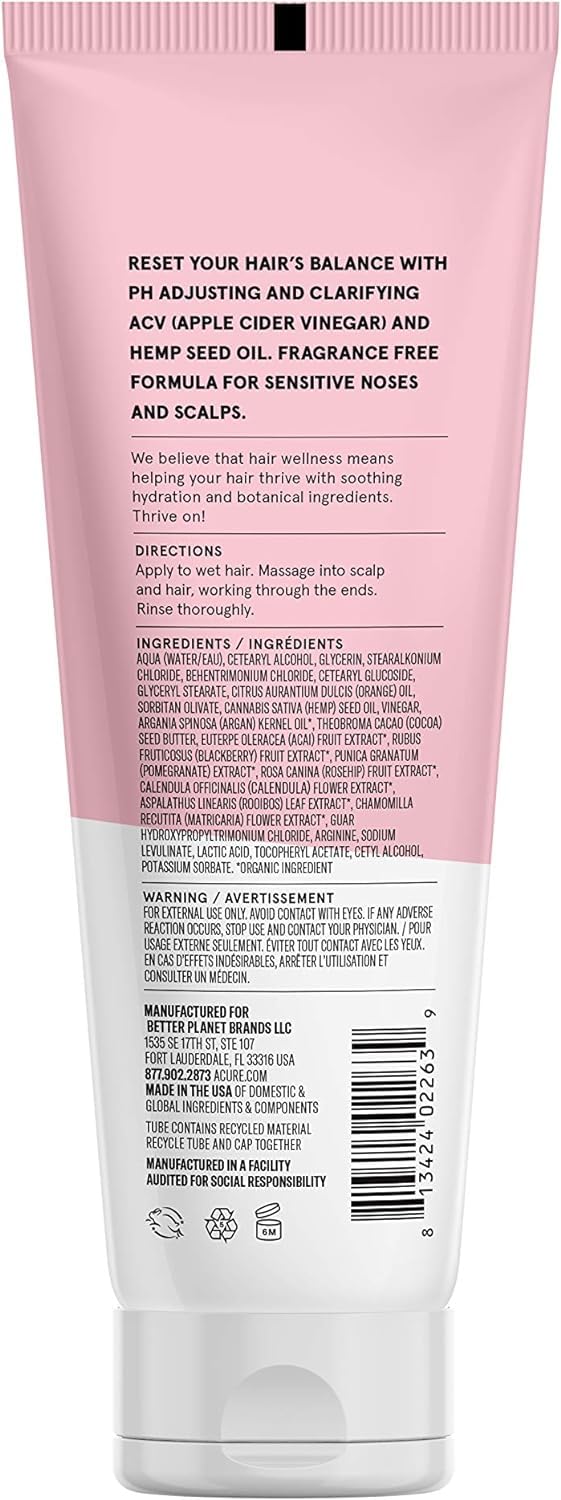 Acure Buildup Balancing Hemp & Apple Cider Vinegar Conditioner | 100% Vegan | Resets & Balances Hair For Styled, Swim & Harsh Conditions | Fragrance Free Formula | 8 Fl Oz