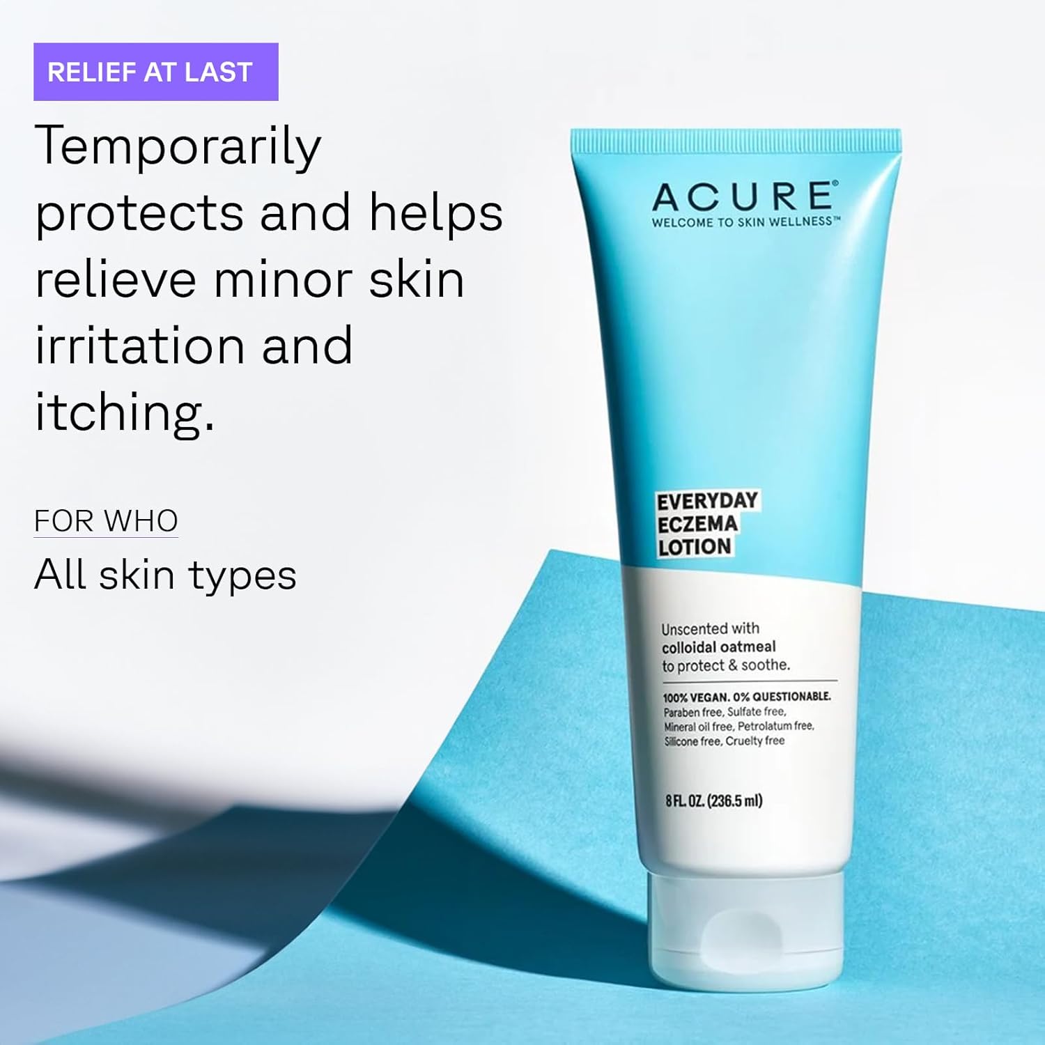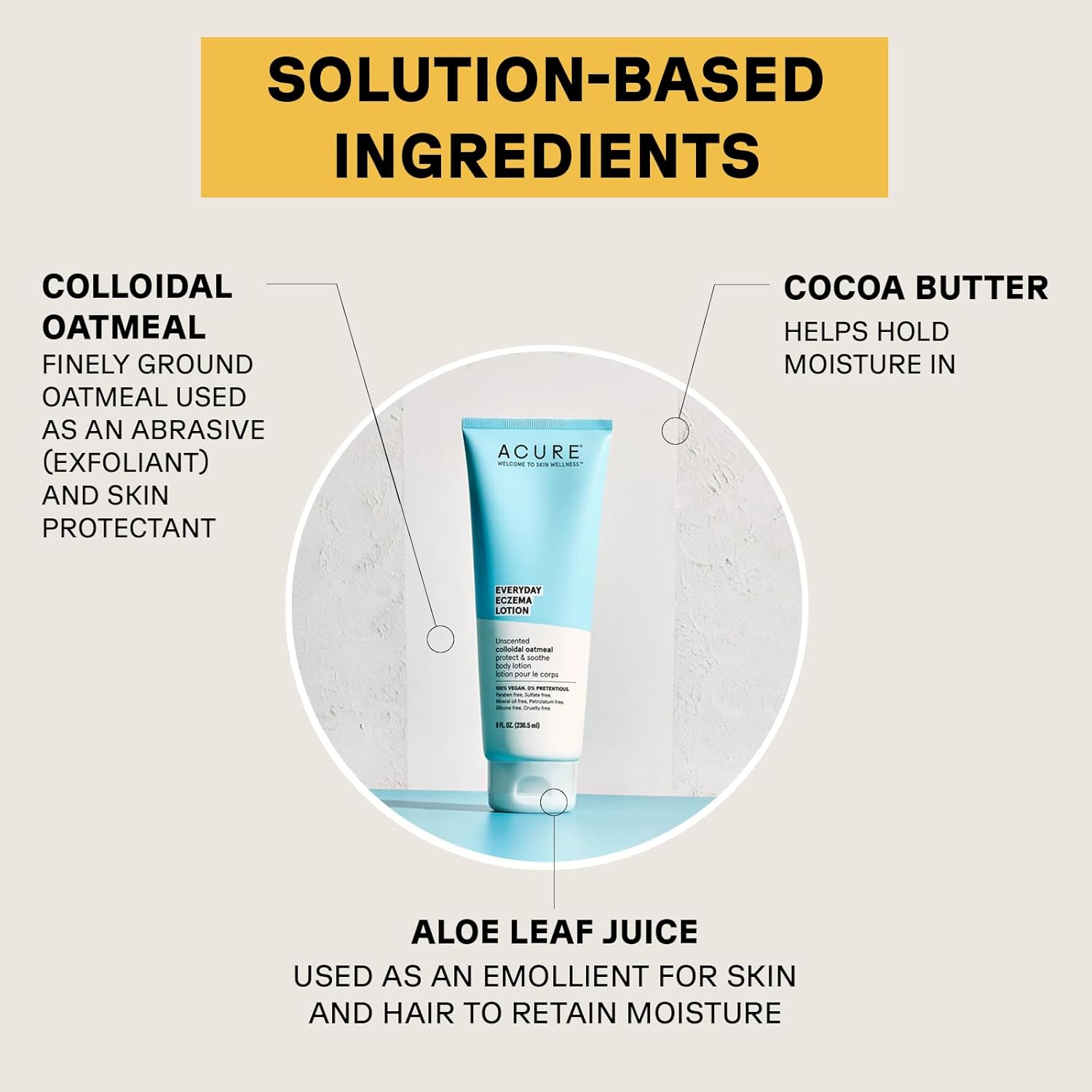 Acure Everyday Eczema Lotion - Daily Skin Protectant With 2% Colloidal Oatmeal For Sensitive, Easily Irritated Skin & Cocoa Butter For Moisturizing Dry Chapped Skin - 100% Vegan - Unscented, 8 Fl Oz