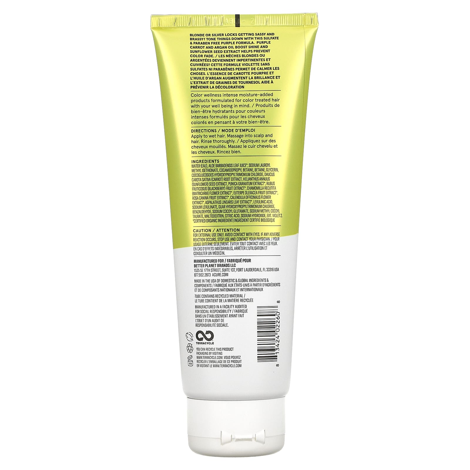Blonde or silver locks getting sassy and brassy Tone things down with this sulfate & paraben free purple formula. Purple carrot and argan oil boost shine and sunflower seed extract helps prevent color fade.