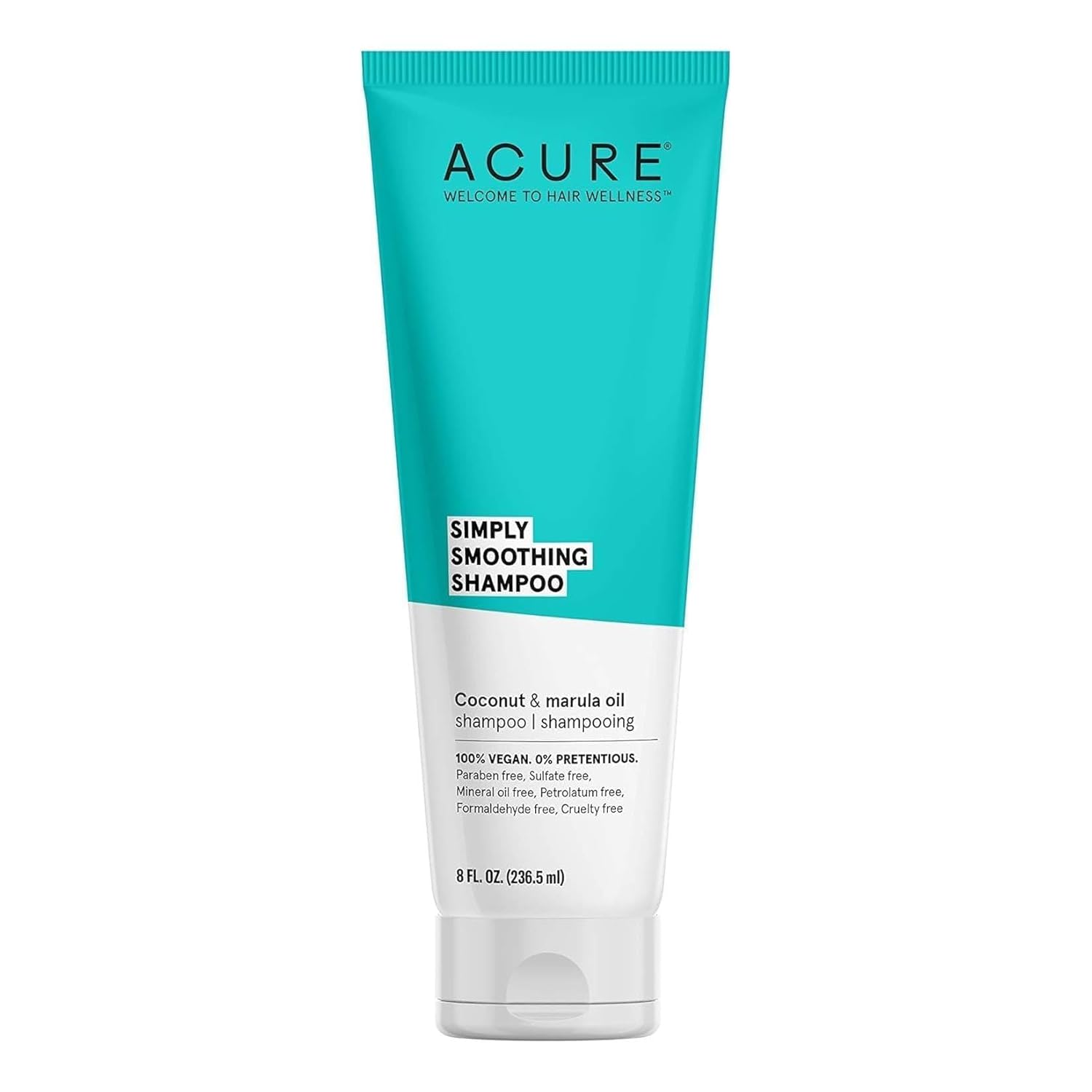 Acure Simply Smoothing Shampoo, Water, Coconut & Marula Oil, 100% Vegan, Performance Driven Hair Care, Smooths & Reduces Frizz, White/Blue, 8 Fl Oz