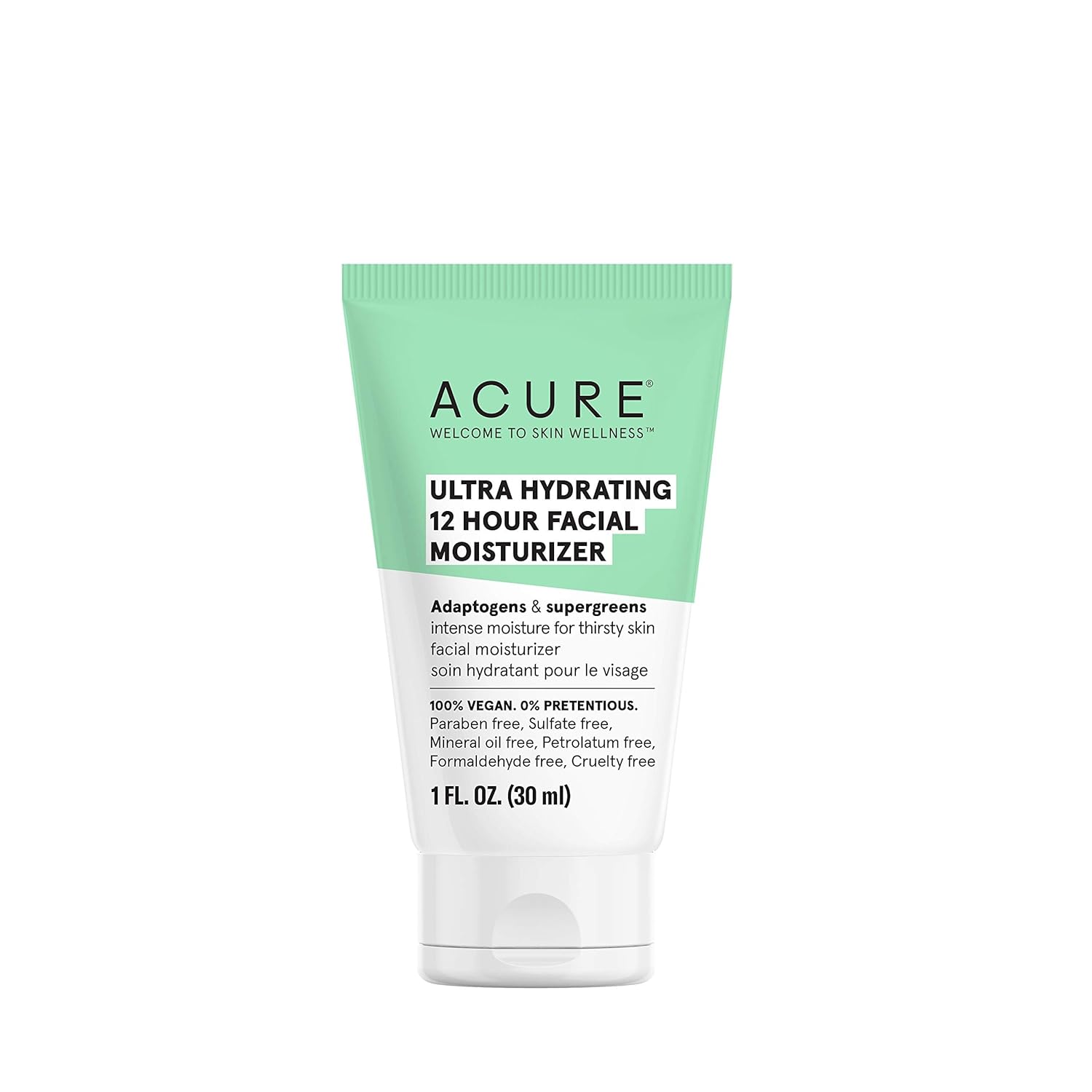 Acure Ultra Hydrating 12 Hour Facial Moisturizer - Intense Morning Moisture For Dry Dull Skin - Infused Blend Of Adaptogens Aswagandha & 7 Supergreens - All Natural Vegan Cream Formula - 1 Fl Oz