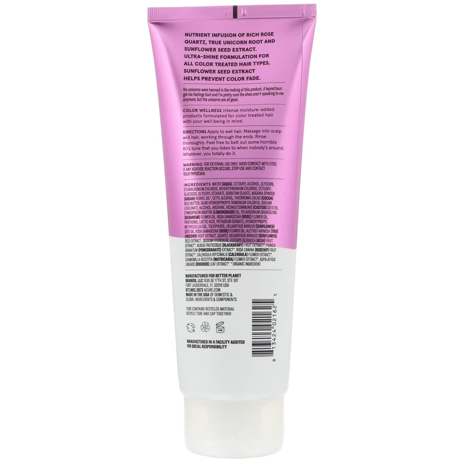 Nutrient infusion of rich rose quartz, true unicorn root and sunflower seed extract. Ultra-shine formulation for all color treated hair types. Sunflower seed extract helps prevent color fade.
