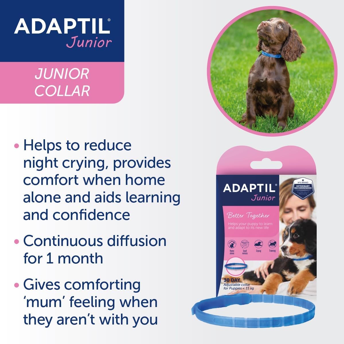 Adaptil Junior Adjustable Puppy Collar | Adaptil Dog Collar To Help Reduce Puppy Anxiety Using Natural Pheromones | Adjustable Calming Dog Collar For Puppies To Aid Training And Socialisation