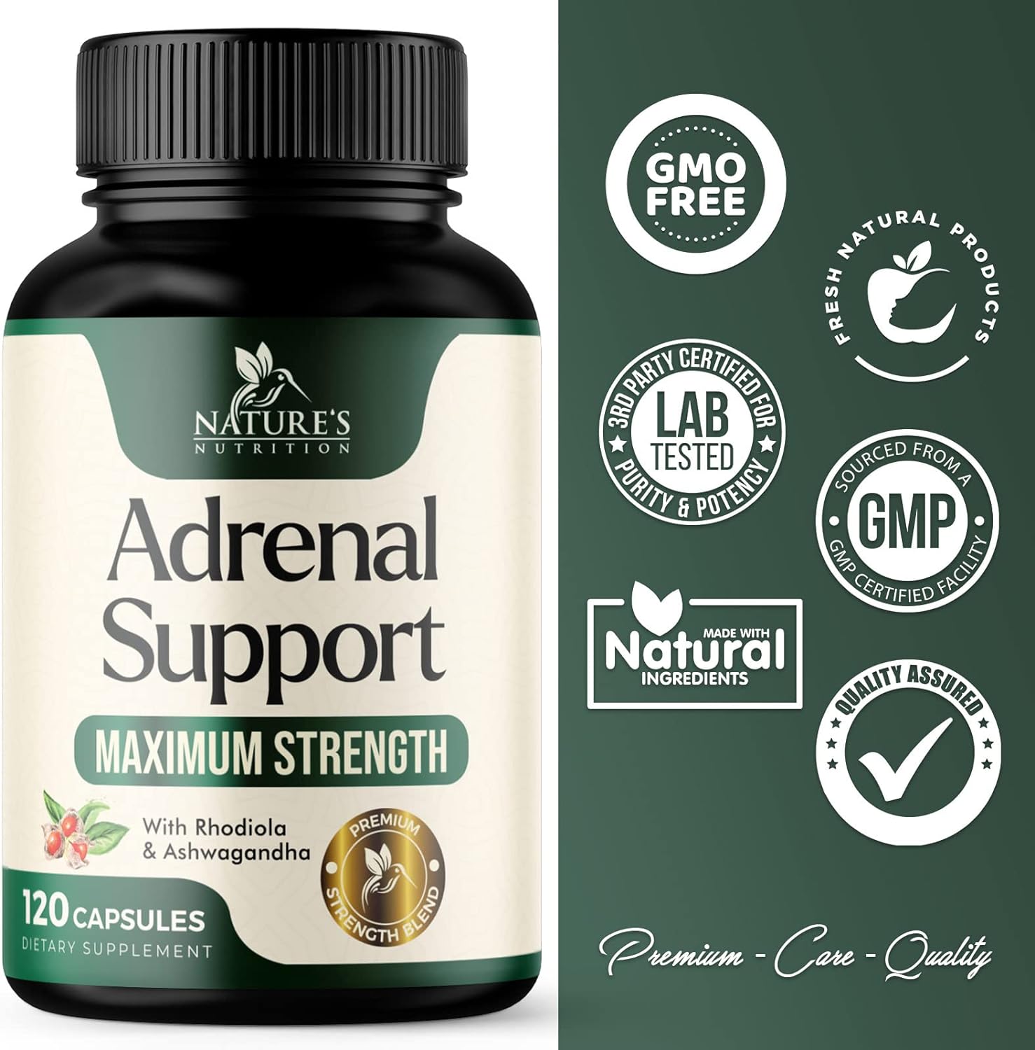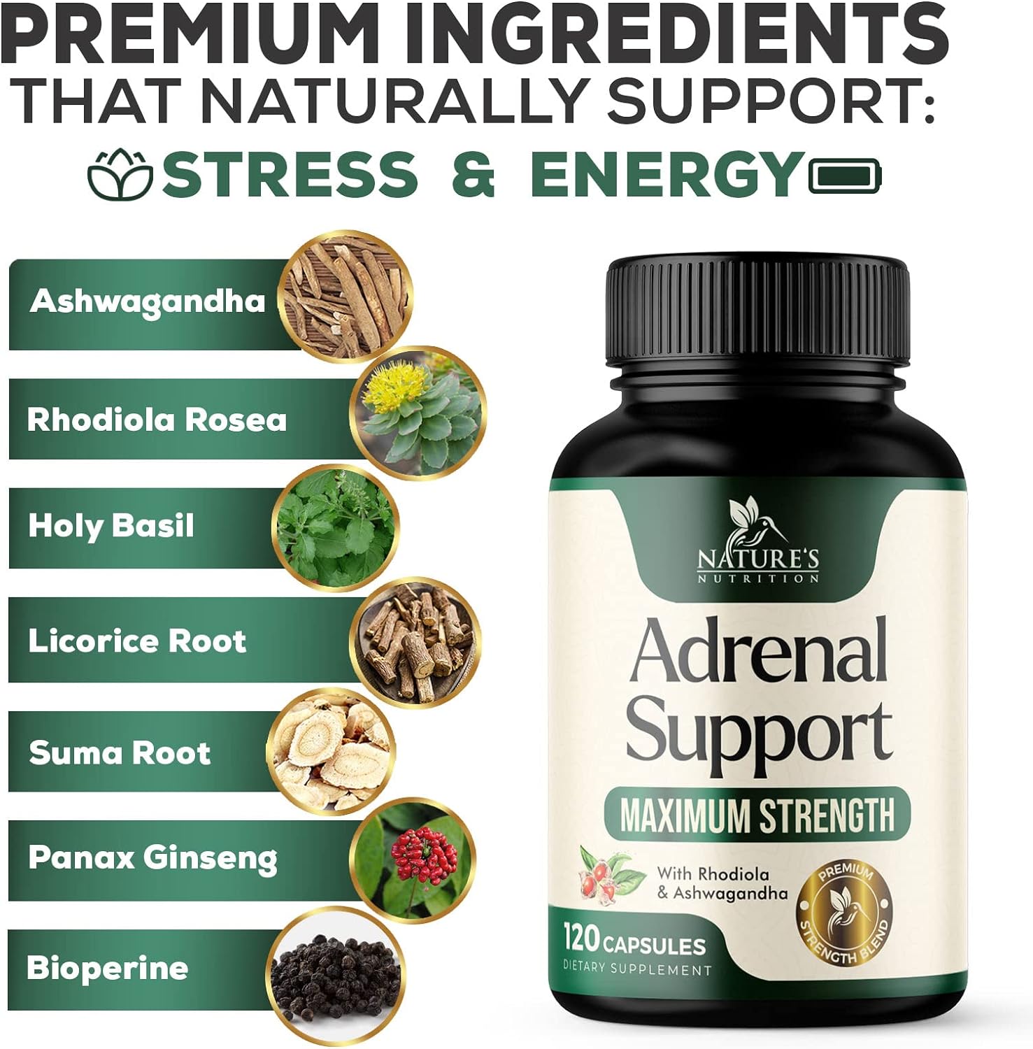 Extra Strength Formula: Power packed with Ashwagandha and a comprehensive blend of essential nutrients and premium adaptogenic herbs, Nature's Nutrition offers unmatched adrenal support to help combat fatigue and promote relaxation, optimal energy, cortisol health, and stress management for both women and men