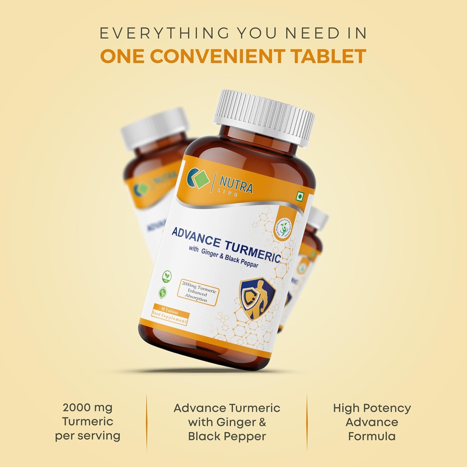 Advance Turmeric Tablets, 2000Mg, Supplement And With Black Pepper & Ginger, Premium 90 Tablets High Strength 3 Month Supply-Nutra Life