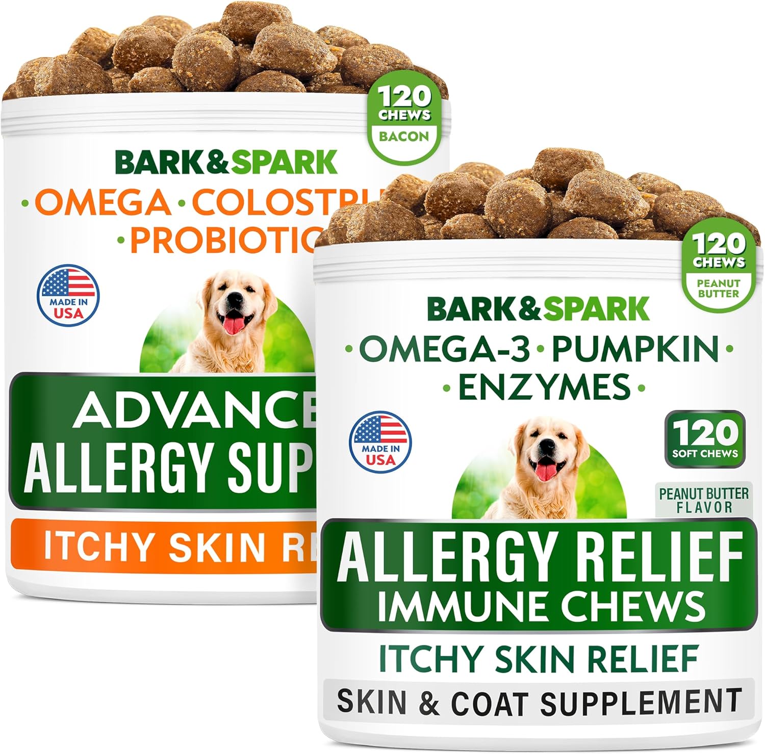 Advanced Dog Allergy + Allergy Relief Bundle - Itch Relief + Anti-Itch Skin & Coat - Probiotics W/Fish Oil Omega 3 + Epa&Dha Fatty Acid - Skin Allergies + Itching&Paw Licking - 240 Chews - Made In Usa