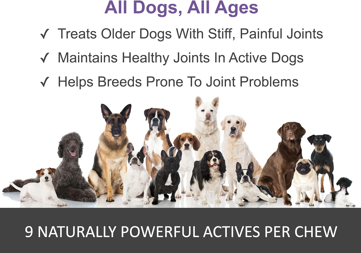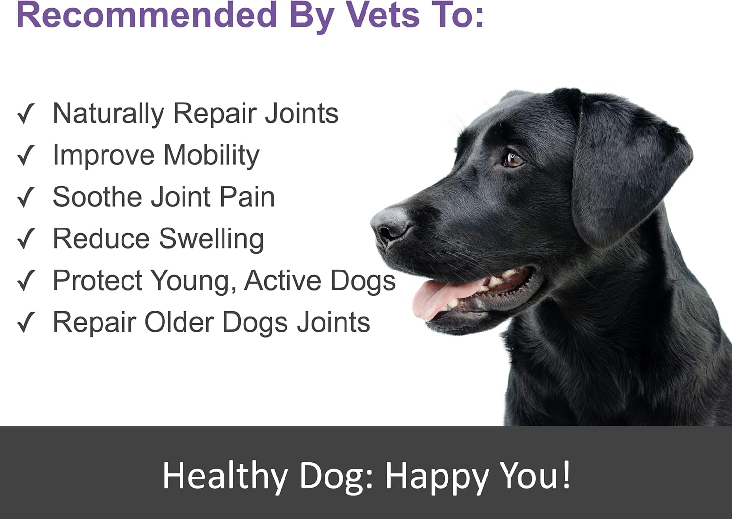 ENHANCED MOBILITY: Joint Repair doesn't just mask symptoms, it gets to the root of your furry friend's discomfort, reducing joint pain and improving mobility with 10 naturally powerful active ingredients10NUTRIENT-PACKED: Each chew is loaded with a blend of glucosamine, chondroitin, hyaluronic acid, MSM, Yucca schidigera, omega-3 fish oil (high in EPA and DHA), and Vitamin E: a recipe designed specifically for canine joint health10DELICIOUS AND BENEFICIAL: Your dog will love the delightful chicken flavor of these chews, and you'll love knowing that every bite delivers vital nutrients necessary to help support and enhance your pet's joint health and overall well-being10SOLUTION FOR ALL DOGS: No matter your dog's age or size, Joint Repair provides the support they need to stay spry and active. Each bite is easy to chew, making it a breeze to incorporate into their routine10PROTECT YOUR DOGS JOINT HEALTH: Joint Repair helps dogs suffering with joint problems. It also helps to prevent joint problems in larger dogs, active dogs and those breeds with a high risk of developing joint problems