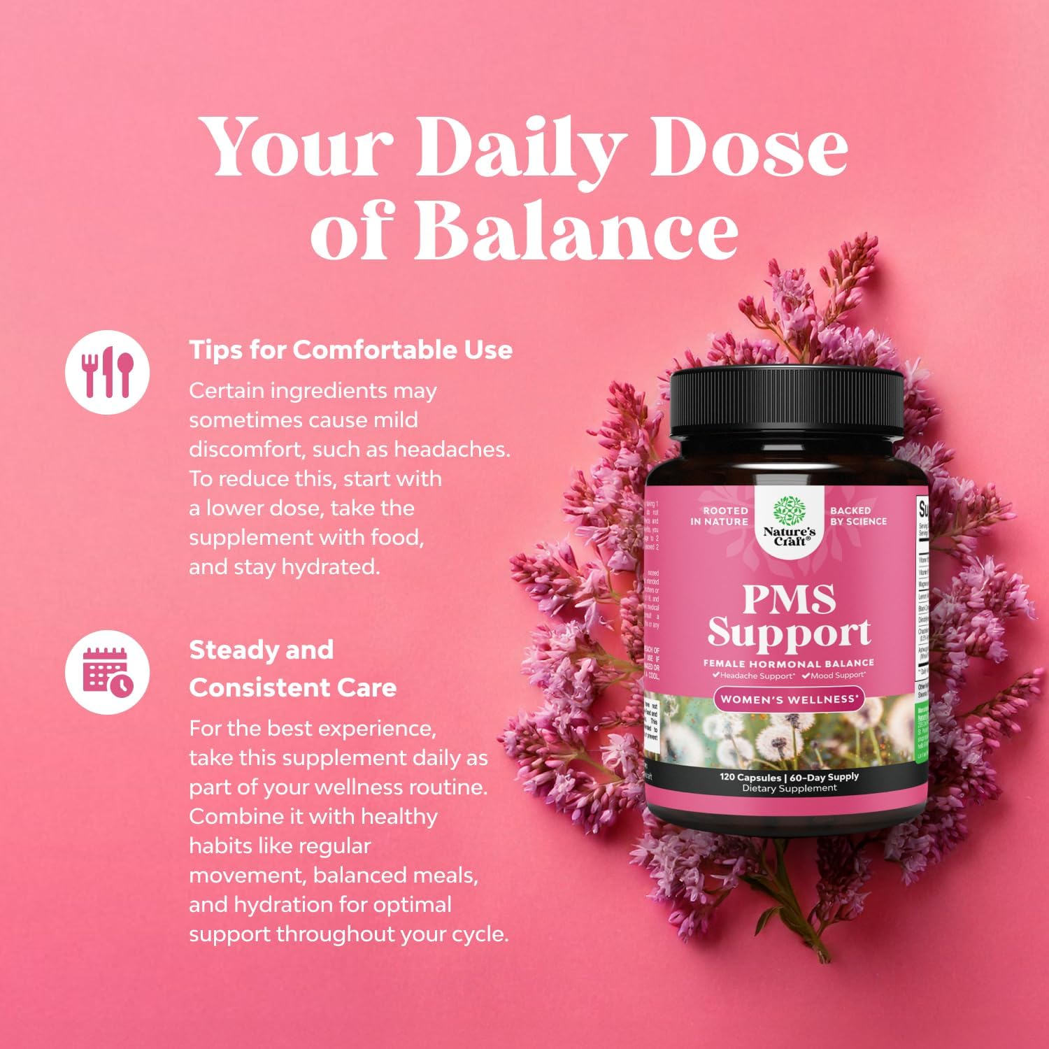 Advanced Pms Support Supplement For Women - Multibenefit Pms Relief Complex For Low Energy Mood Support Period Cramps And Bloating Relief For Women - Menstrual Hormonal Balance For Women 120 Capsules