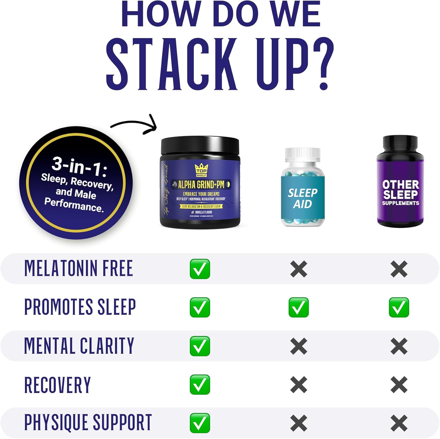 Advanced Sleep Supplement For Men, Nootropic Night Time Burner & Anabolic Recovery, Natural Sleep Aid With Magnesium Glycinate, Apigenin, Selenium - Vanilla Flavor | Alpha Grind Pm