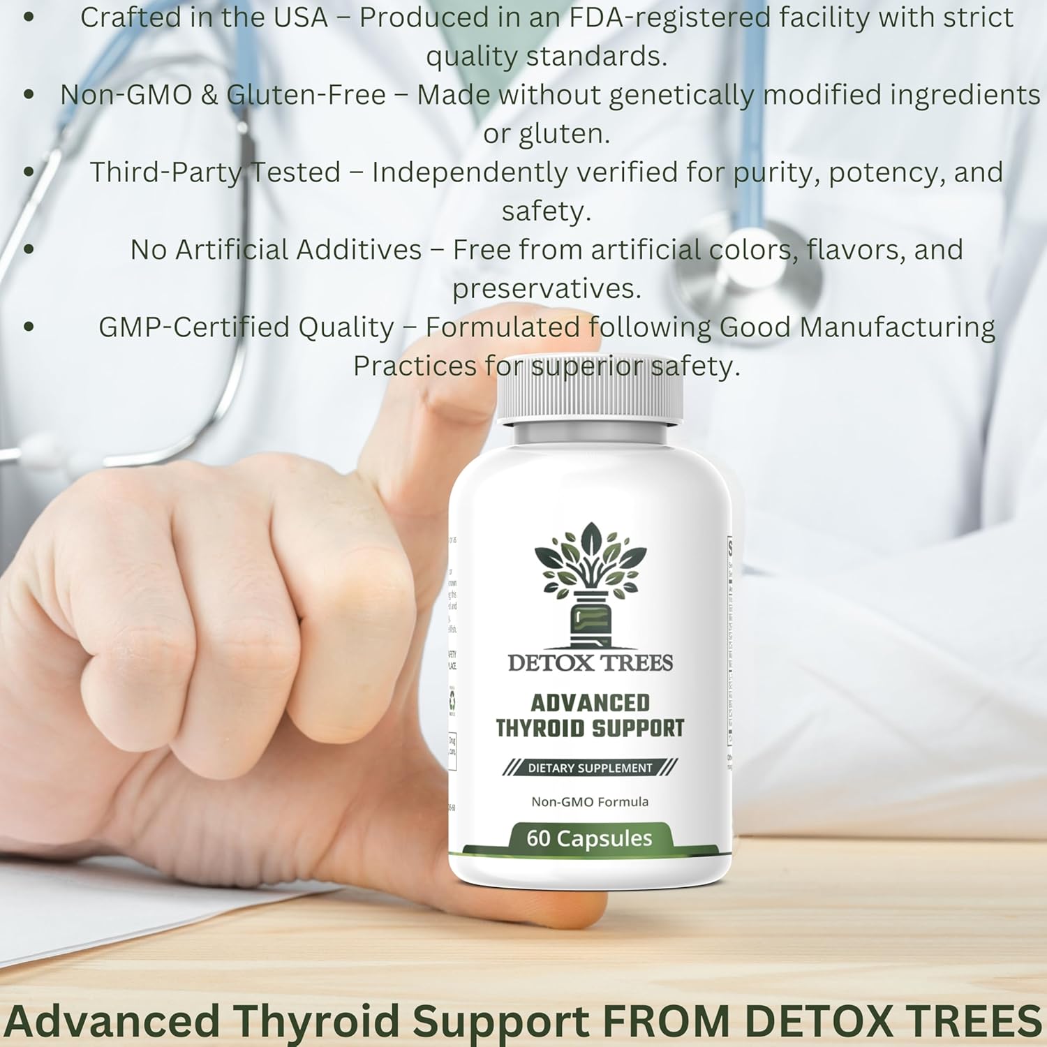 About this item COMPREHENSIVE THYROID SUPPORT - Our thyroid support for women combines iodine, L-tyrosine, and ashwagandha to aid thyroid hormone synthesis, helping to maintain a healthy balance and support your overall well-being, crafted with care for optimal results ENHANCED FORMULA FOR OVERALL WELL-BEING - Formulated with selenium, zinc, and herbal extracts to provide essential nutrients that support thyroid metabolism and energy levels, helping you stay active and balanced throughout your daily routine NON-GMO - Made with non-GMO ingredients, our thyroid support for men is free from artificial additives and common allergens, ensuring a clean and safe choice for various dietary needs QUALITY YOU CAN TRUST - Manufactured in a CGMP-certified facility in the USA, our thyroid support complex uses globally sourced ingredients, ensuring the highest standards of safety, purity, and potency in every bottle DESIGNED FOR DAILY WELLNESS - Take just two easy-to-swallow capsules daily with a meal, a convenient and effective way to incorporate essential thyroid-supportive nutrients into your routine, tailored to fit a busy lifestyle โบ See more product details,COMPREHENSIVE THYROID SUPPORT - Our thyroid support for women combines iodine, L-tyrosine, and ashwagandha to aid thyroid hormone synthesis, helping to maintain a healthy balance and support your overall well-being, crafted with care for optimal results,ENHANCED FORMULA FOR OVERALL WELL-BEING - Formulated with selenium, zinc, and herbal extracts to provide essential nutrients that support thyroid metabolism and energy levels, helping you stay active and balanced throughout your daily routine,NON-GMO - Made with non-GMO ingredients, our thyroid support for men is free from artificial additives and common allergens, ensuring a clean and safe choice for various dietary needs,QUALITY YOU CAN TRUST - Manufactured in a CGMP-certified facility in the USA, our thyroid support complex uses globally sourced ingredients, ensuring the highest standards of safety, purity, and potency in every bottle,DESIGNED FOR DAILY WELLNESS - Take just two easy-to-swallow capsules daily with a meal, a convenient and effective way to incorporate essential thyroid-supportive nutrients into your routine, tailored to fit a busy lifestyle
