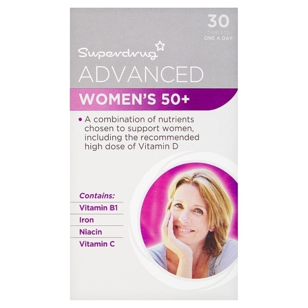 Product Information:S/D Advanced Women S Health 50+ 30S,Features:Containing 23 Vitamins And Minerals,Warning Or Restrictions:Not Suitable For Children Under 12. Before Taking This Product, Please Consult Your Doctor Or Pharmacist If You Are Taking Any Medication, Have Any Medical Condition, Are Pregnant Or Breastfeeding. Do Not Use If Seal Is Broken,Product Specification:Calcium Carbonate, Magnesium Oxide, Cellulose, Ascorbic Acid, Maltodextrin, Dicalcium Phosphate, Hydroxypropylmethylcellulose, Ferrous Fumarate, Vitamin E Acetate, Nicotinamide, Calcium Pantothenate, Zinc Oxide, Silicon Dioxide, Cross-Linked Sodium Carboxymethylcellulose, Magnesium Stearate, Pyridoxine Hydrochloride, Talc, Colour (Iron Oxide), Thiamine Mononitrate, Riboflavin, Manganese Sulphate, Copper Sulphate, Vitamin A Acetate, Chromium Chloride, Antioxidants (Tocopherol, Tartaric Acid, Sodium Ascorbate), Folic Acid, Potassium Iodide, Sodium Selenite, Sodium Molybdate, Biotin, Vitamin K1, Cyanocobalamin, Vitamin D3,Product Uses:Iron Contributes To The Reduction Of Tiredness And Fatigue. Vitamin B1 To Support Energy Levels Calcium Supports Healthy Bones And Muscles Vitamin D For Absorption Of Calcium