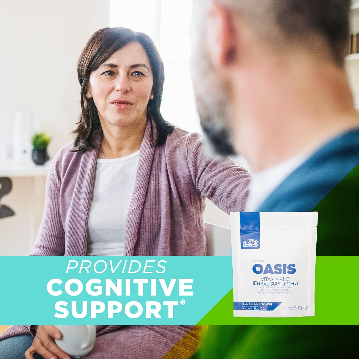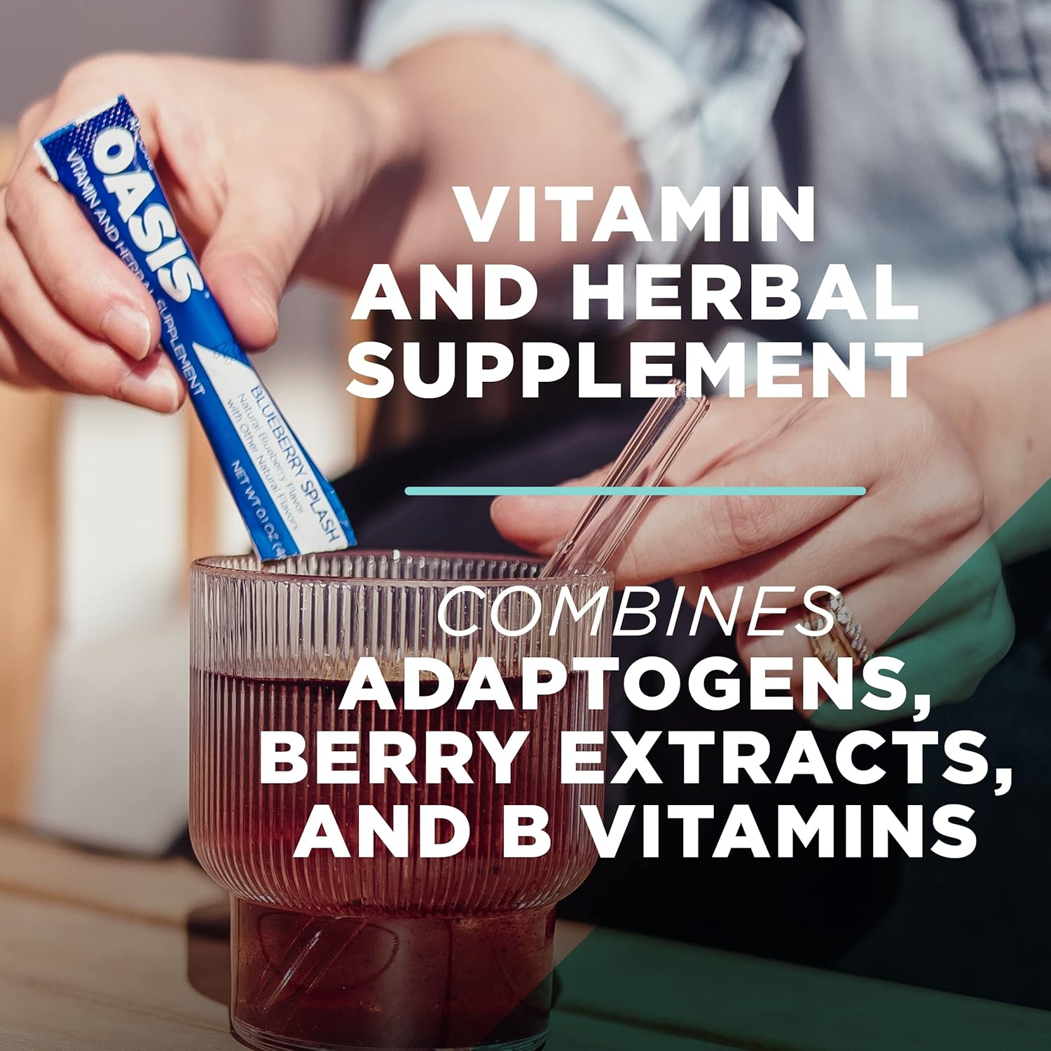 Advocare Oasis - Vitamin & Herbal Drink Mix - Includes Adaptogens, Berry Extract & B Vitamins - Supports Stress Relief & Immune Health* - Blueberry Splash, 14 Stick Packs