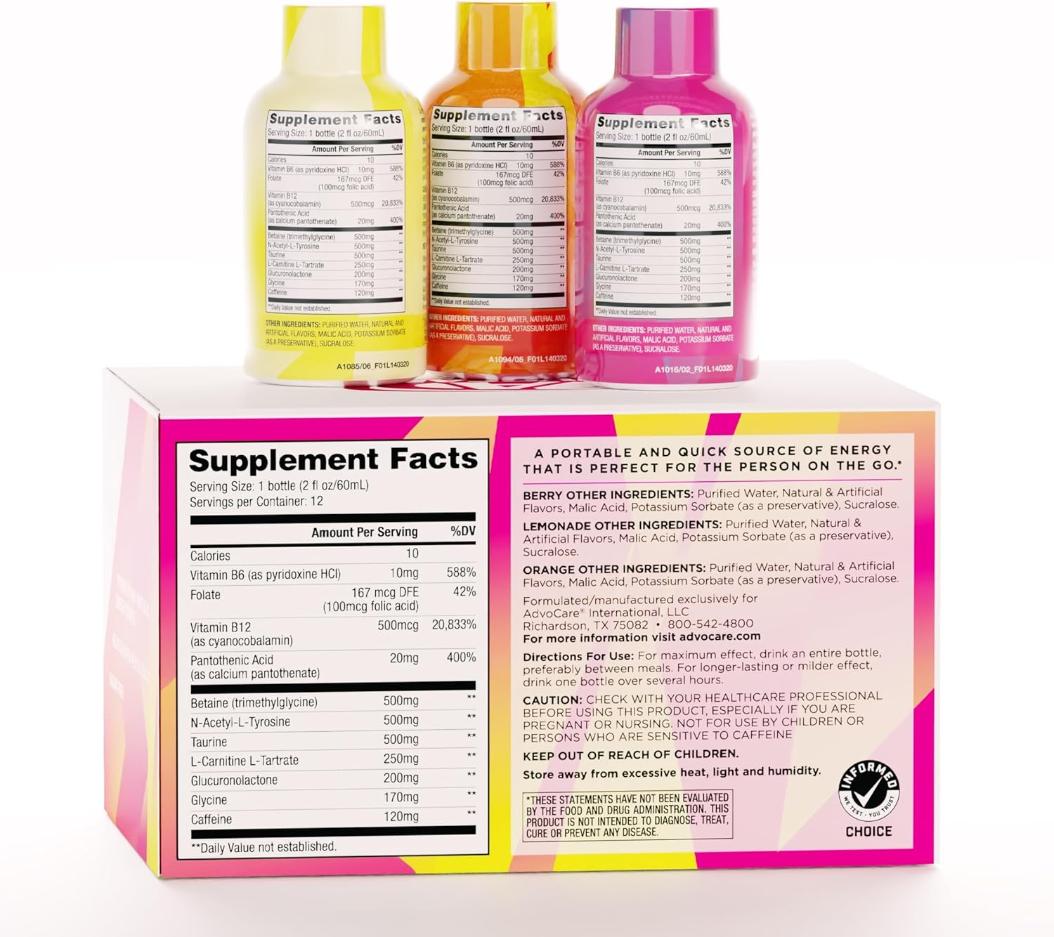 Advocare Slam Variety Pack - Liquid Vitamin & Amino Acid Supplement - Contains Vitamin B-12, Vitamin B-6, Folic Acid & More - Orange, Berry & Lemonade - 12 Bottles