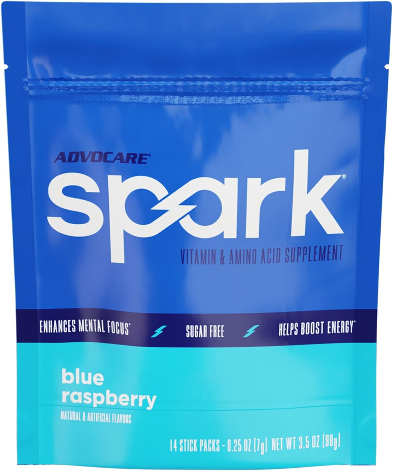 AdvoCare Spark Vitamin & Amino Acid Supplement - Focus & Energy Drink Powder Mix with Vitamin A, B-6, C & E - Also Includes L-Carnitine & L-Tyrosine - Blue Raspberry, 14 Stick Packs : Health & Household