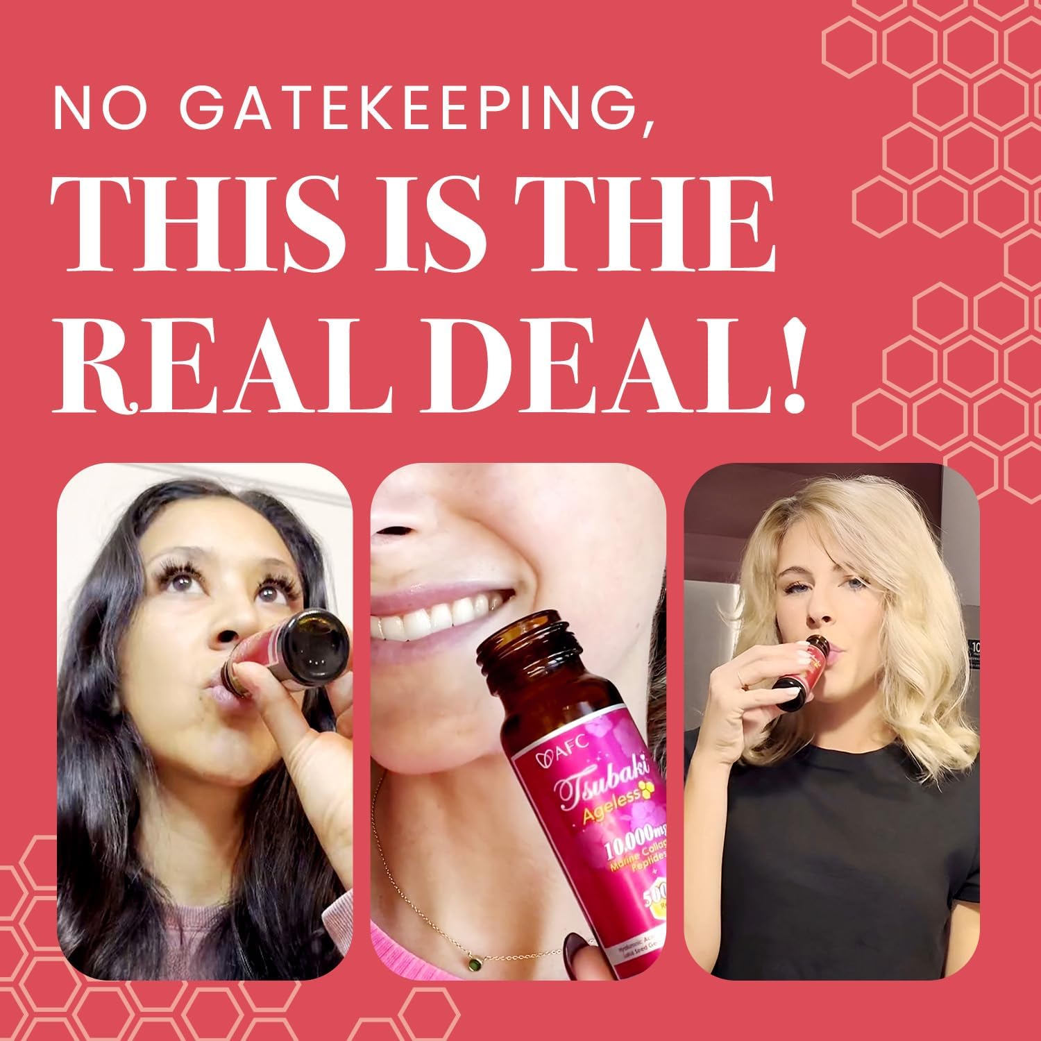 Afc Japan Tsubaki Ageless Beauty Collagen Drink From Japan With 10,000Mg Marine Collagen Peptides + 500Mg Royal Jelly + Hyaluronic Acid + Vitamin Bs & C For Skin Revitalization 1.69Fl.Ozx10Sx3