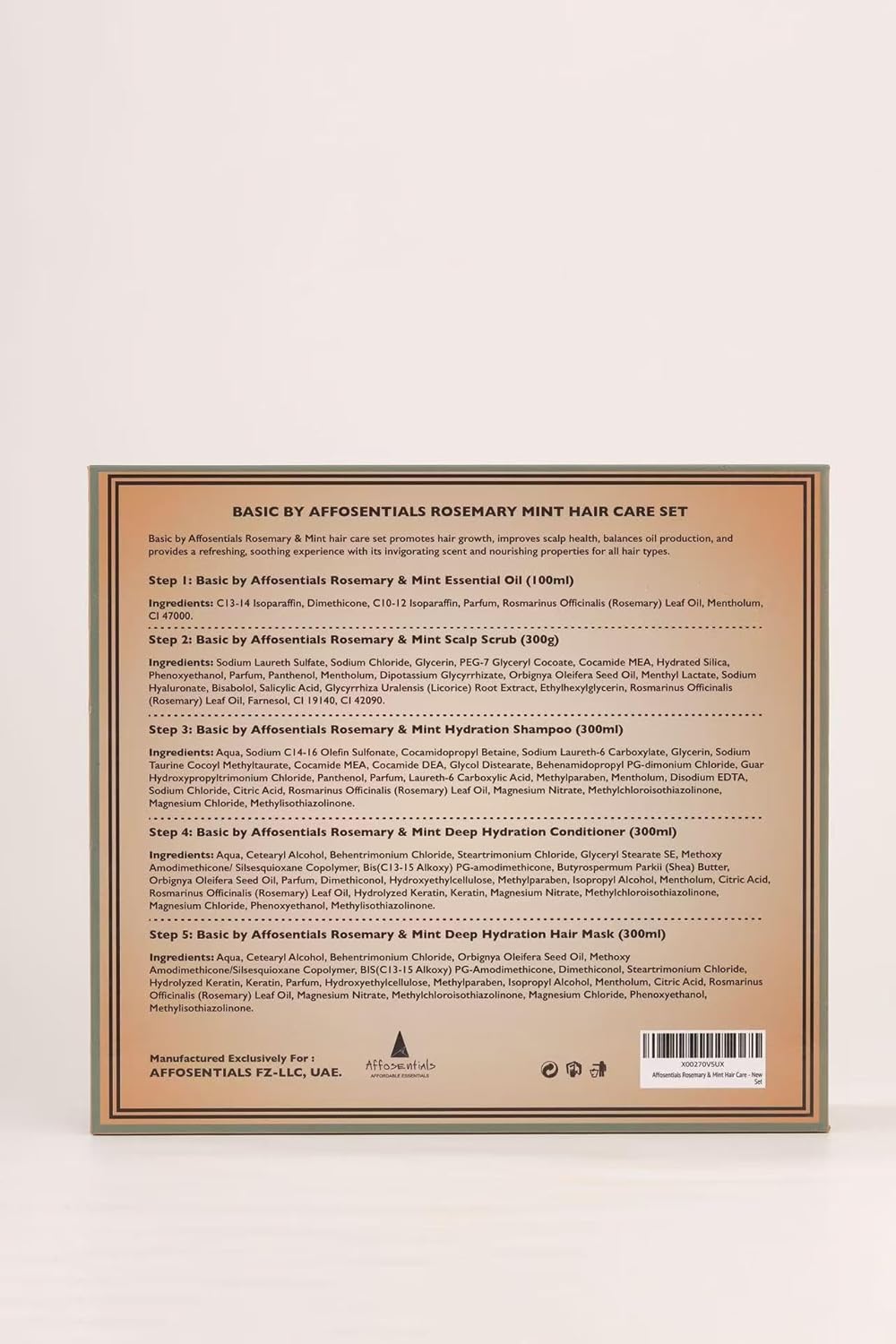 Affosentials 5-Step Rosemary Mint Hair Care Set | Sulphate-Free Shampoo, Conditioner, Hair Mask, Scalp Scrub & Oil | Deep Hydration & Hair Growth | Luxurious Gift For Men & Women