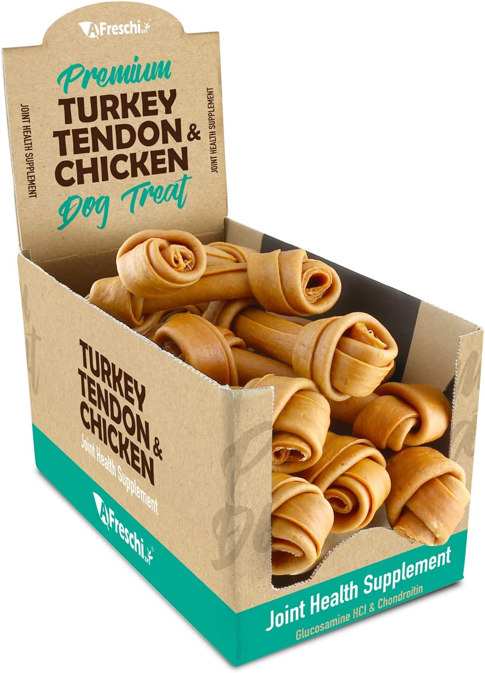 Afreschi Turkey Tendon And Chicken For Dogs, All-Natural Joint Health Supplement (Glucosamine And Chondrotin), Good For Senoir Dog Chew, Puppy Treat, Hypoallergenic, Alternative To Rawhide (Large)