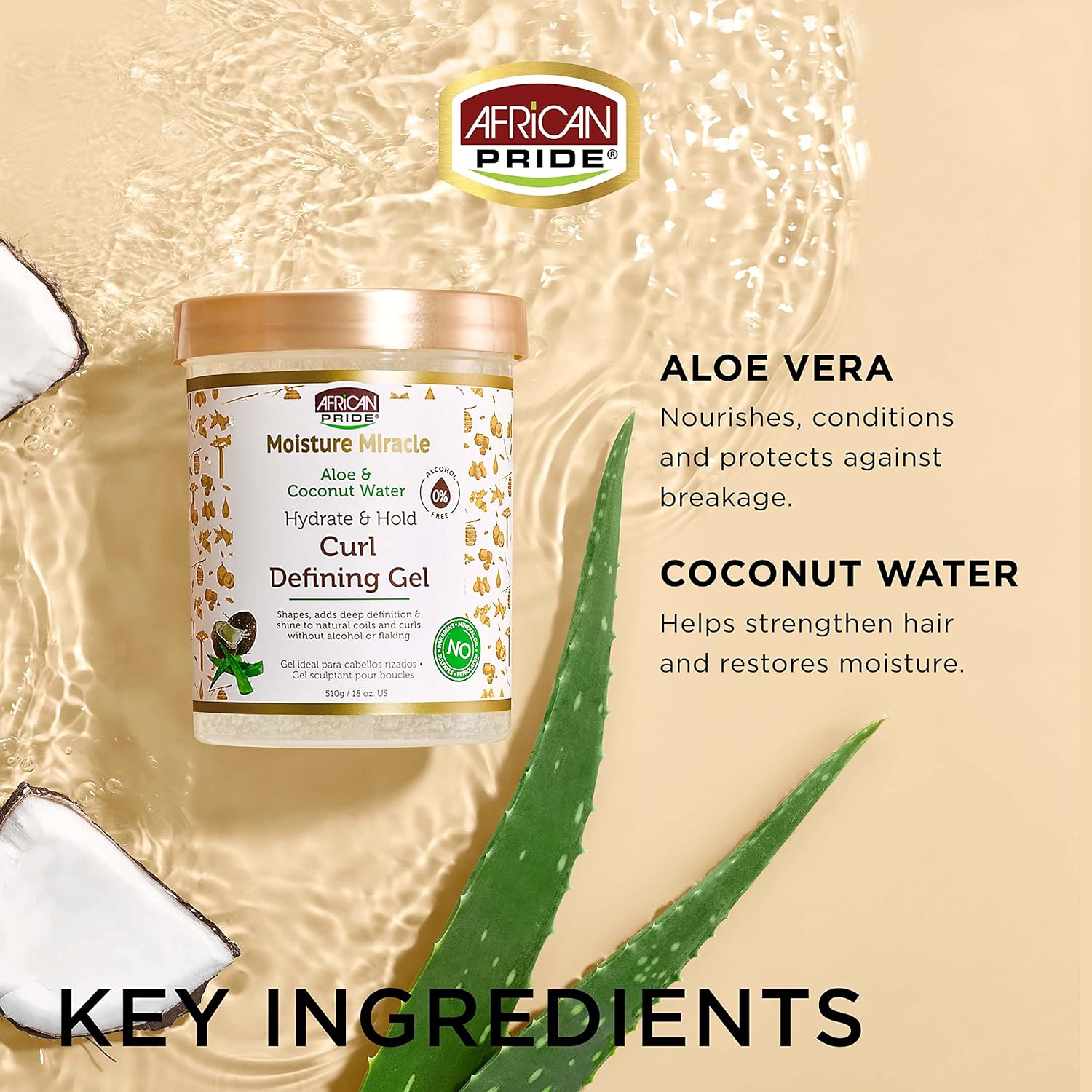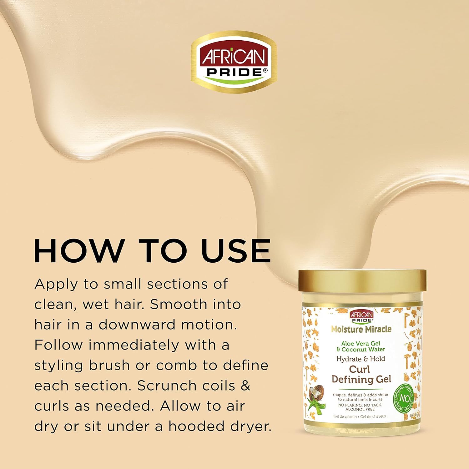 African Pride Moisture Miracle Hydrate & Hold Curl Defining Hair Gel (3 Pack), For Natural Coils & Curls, Hydrates & Controls Frizz, 18 oz