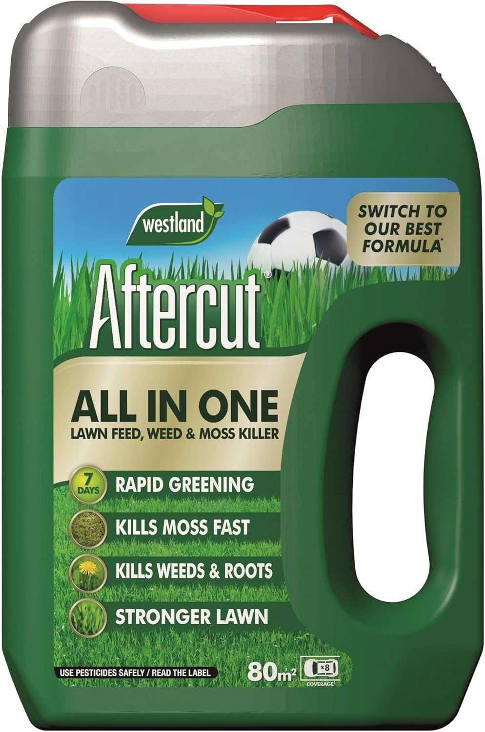 Aftercut 20400459 All In One Lawn Feed, Weed And Moss Killer Even-Flo Spreader, 80 M2, 2.56 Kg, Natural20400459