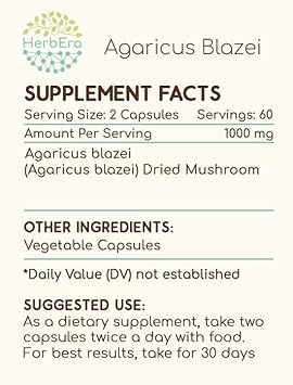 Agaricus Blazei 60 Capsules, 500 Mg, Agaricus (Agaricus Blazei Murill) Dried Mushroom (60 Capsules)