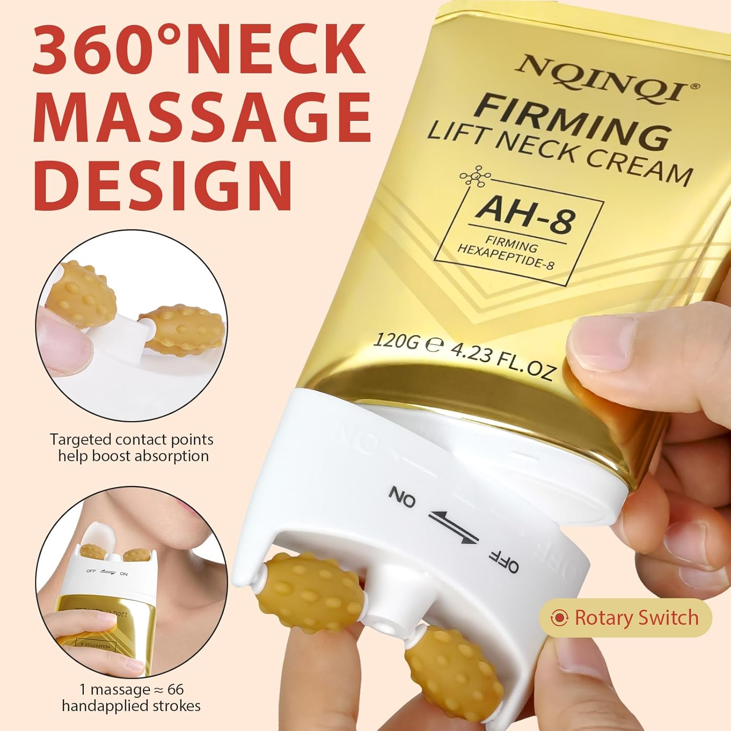 Ah-8 Firming Neck Cream With Roller - Neck And Chest Firming Cream To Lift, Tighten & Smooth Sagging Skin, Reduce Wrinkles & Hydrate For Youthful Neck, 4.23 Fl Oz