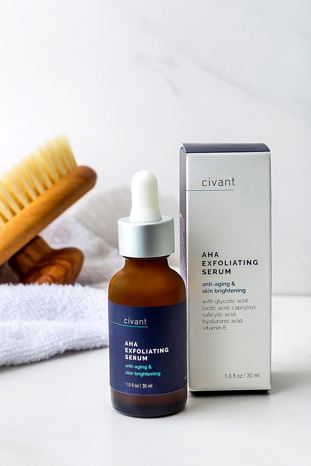 Aha Exfoliating Serum With Glycolic Acid - Face Exfoliant Promoting Faster Skin Renewal And Absorption - Slows Aging - Brightening And Smoothing Toning Solution - Made In The Usa, 1.0 Oz