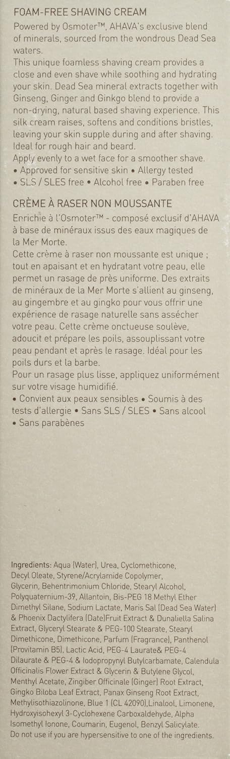 Ahava Men'S Foam-Free Shaving Cream - Foamless Silky Shaving Cream, Closer Shaving, Soothes & Softens, Enriched With Osmoter & G-Force: Ginger Root, Ginseng, Ginkgo Biloba & Green Tea, 6.8 Fl.Oz